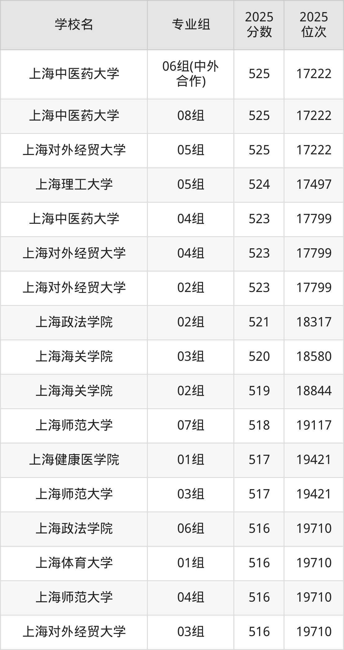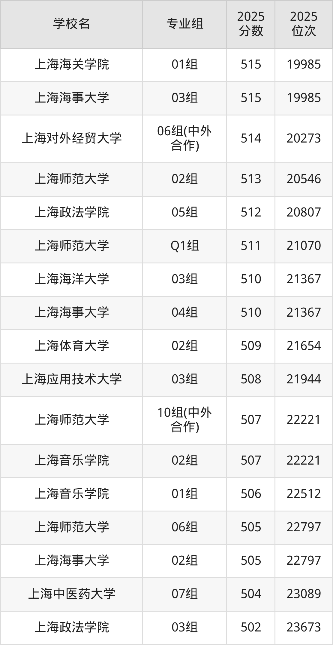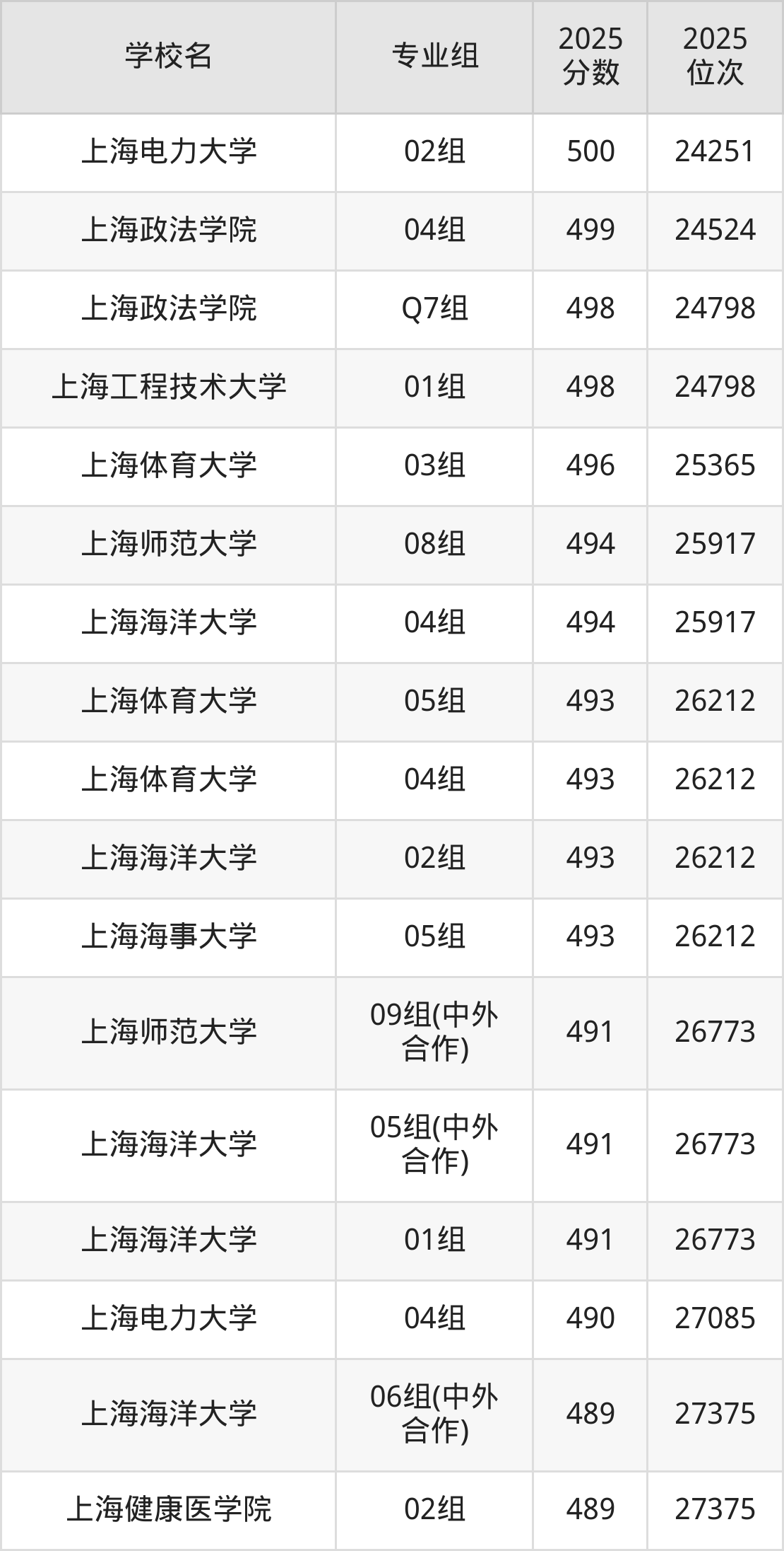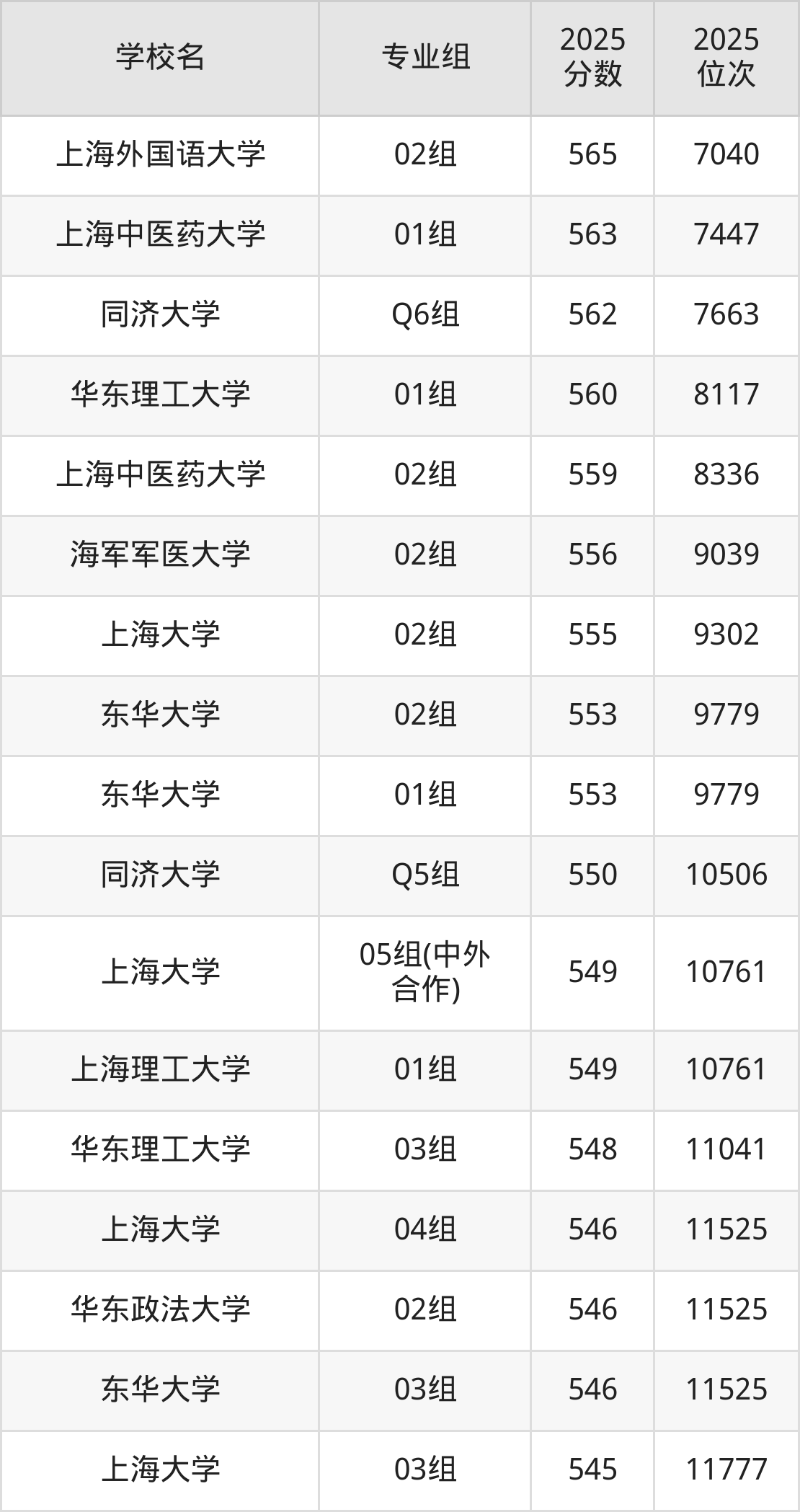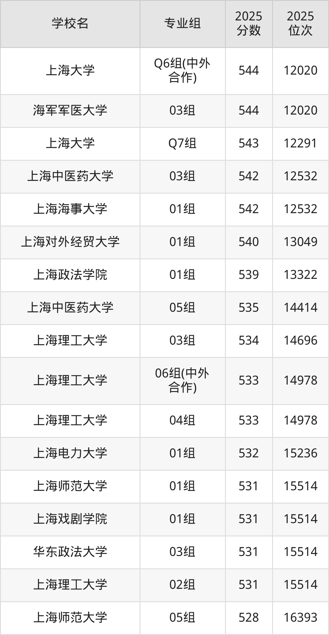 2025年上海市公办本科录取分数线一览表完整版,请查看: