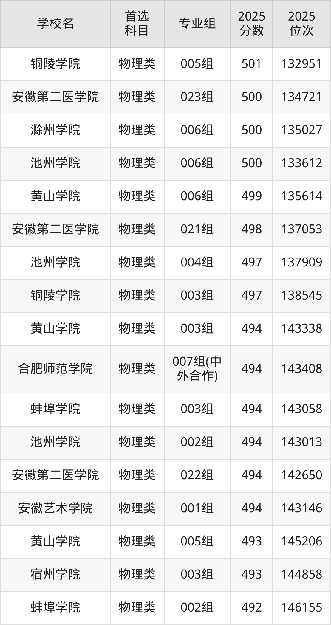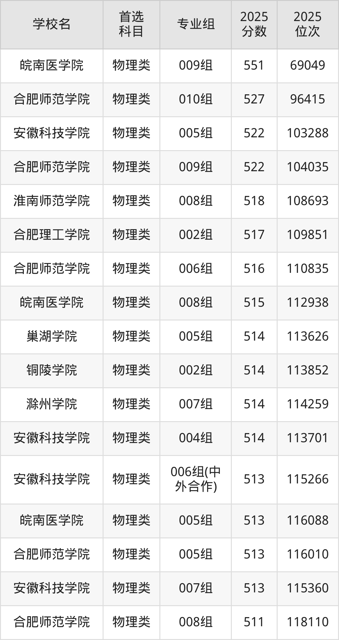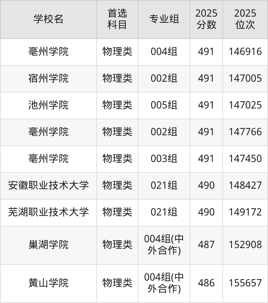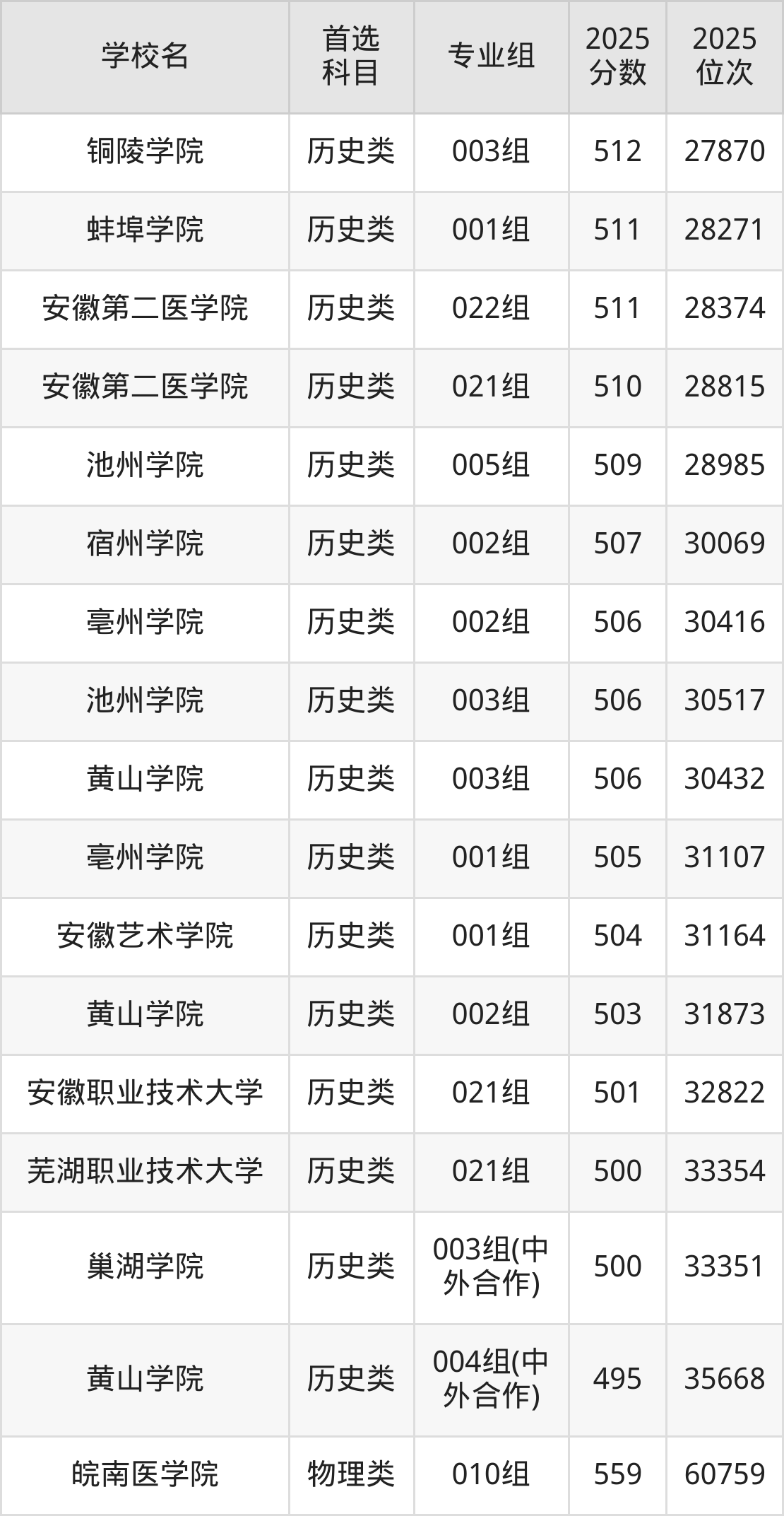 2025年安徽省公办二本大学录取分数线一览表完整版,请查看: