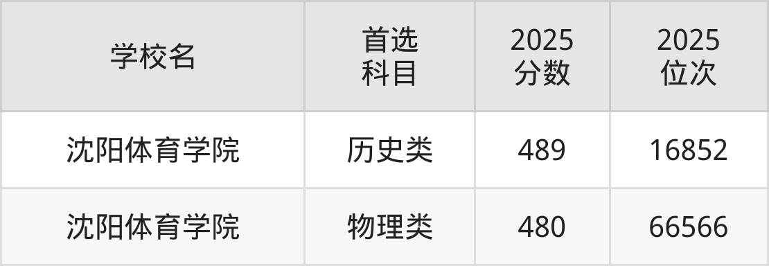 2025年一共有1所二本体育大学在辽宁物理类招生,录取分数线480分,对应最低位次66566名。