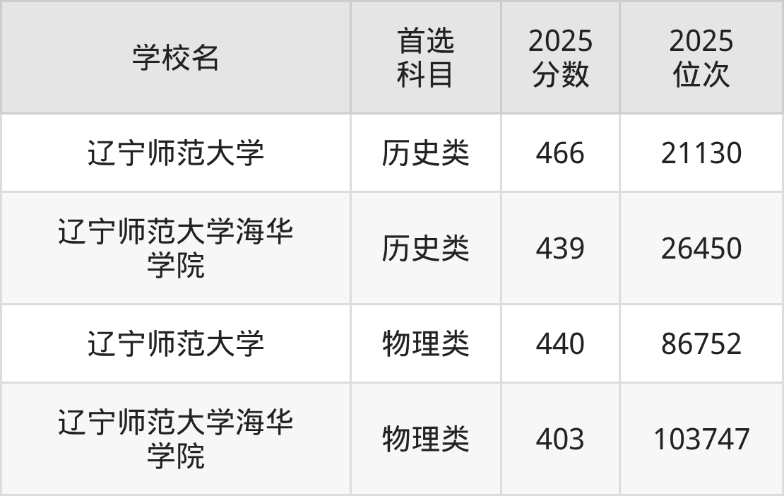 2025年一共有2所师范类大学在大连历史类招生,录取分数线从439分到466分不等,对应最低位次从26450名到21130名。