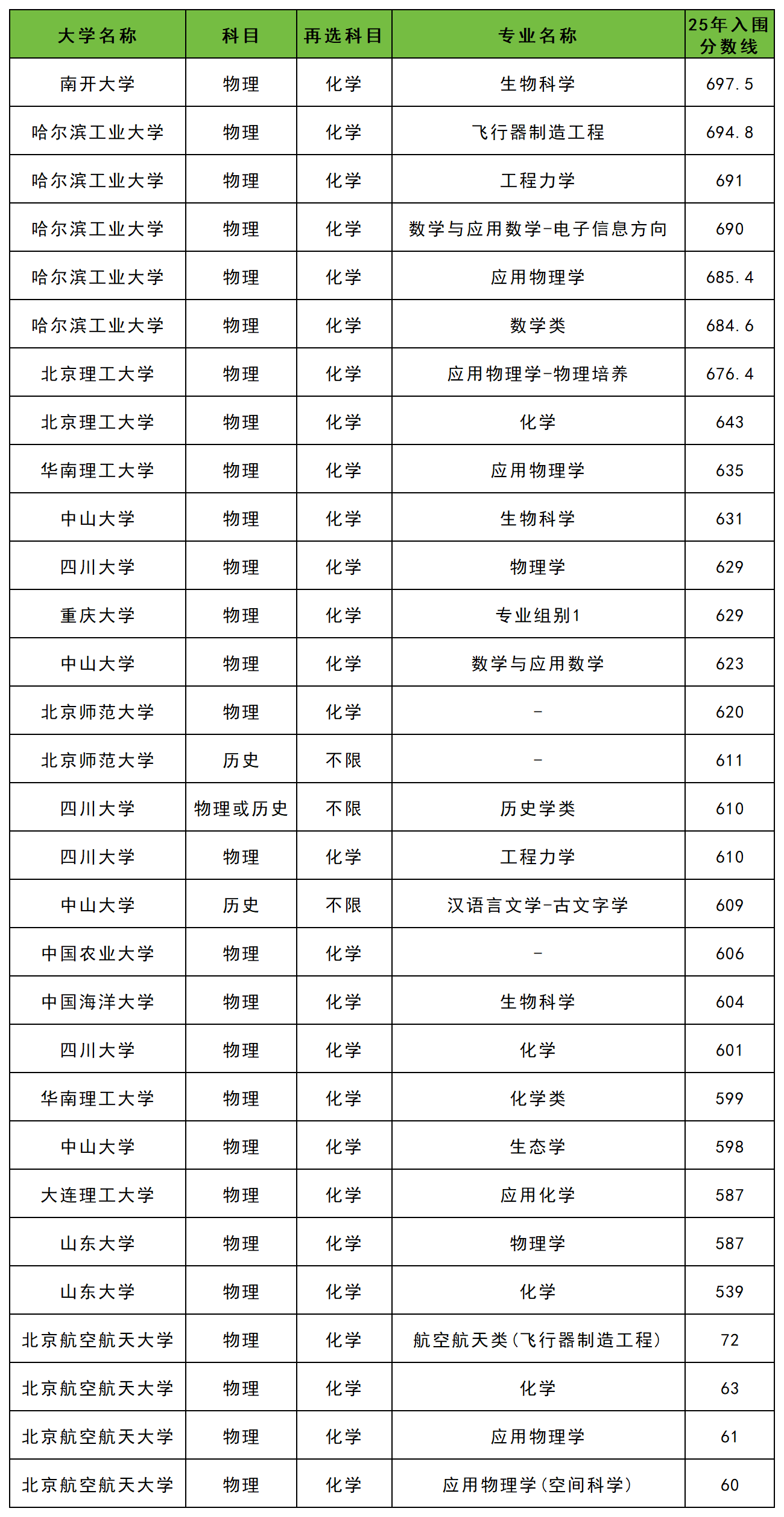 南开大学:物理类697.5分;