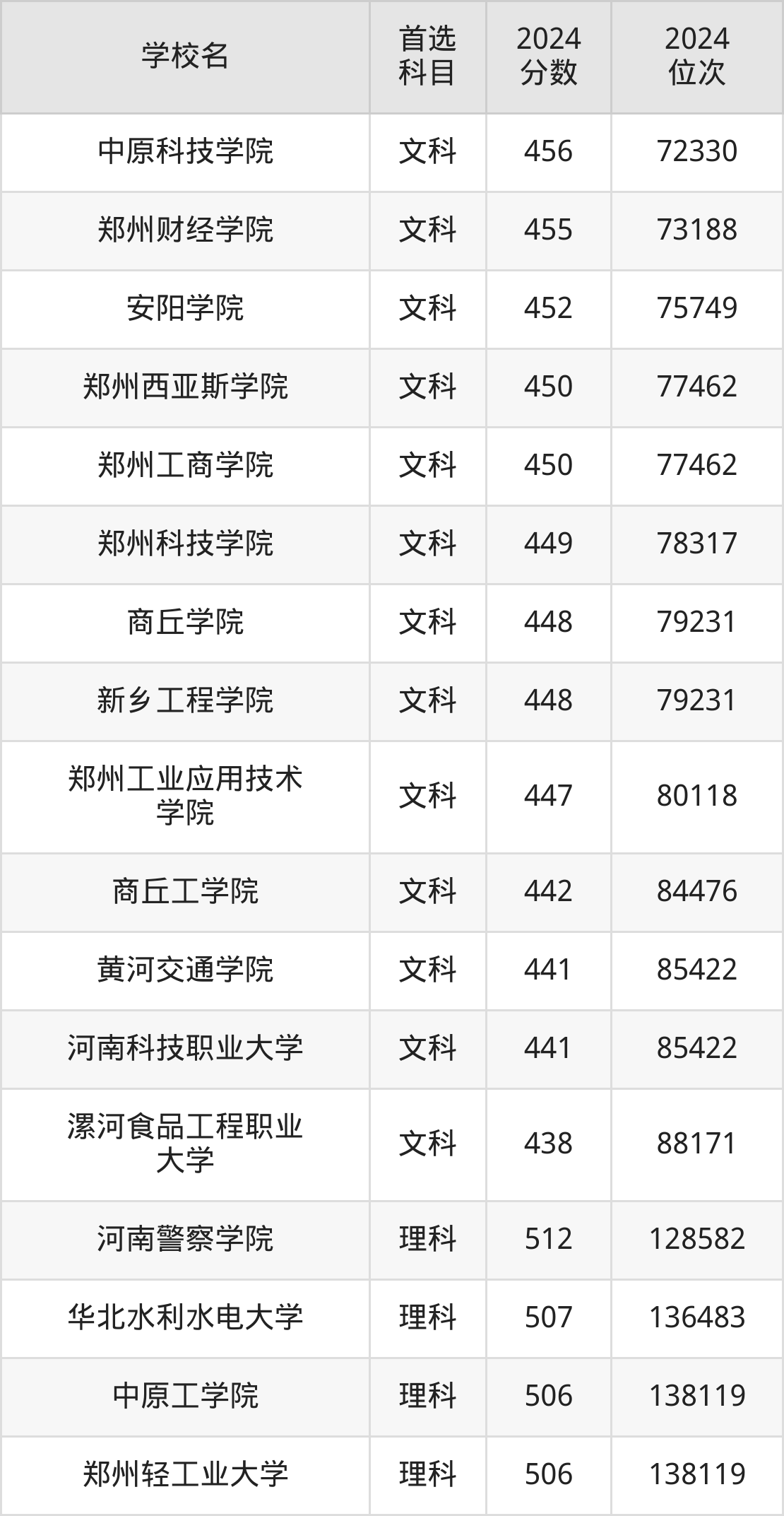 2024年河南二本大学最低录取分数线是438分,收分最低的学校为漯河食品工程职业大学。