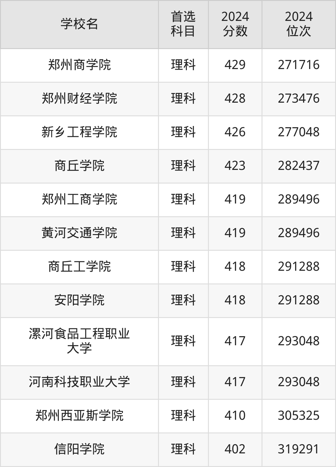2024年河南二本大学最低录取分数线是402分,收分最低的学校为信阳学院。