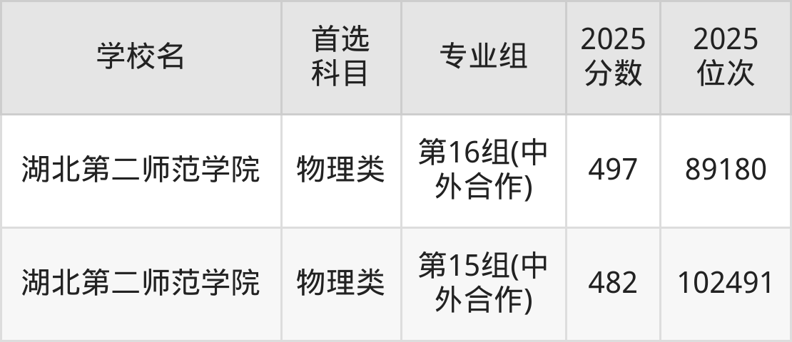(4)湖北第二师范学院第16组(中外合作):497分、89180名;