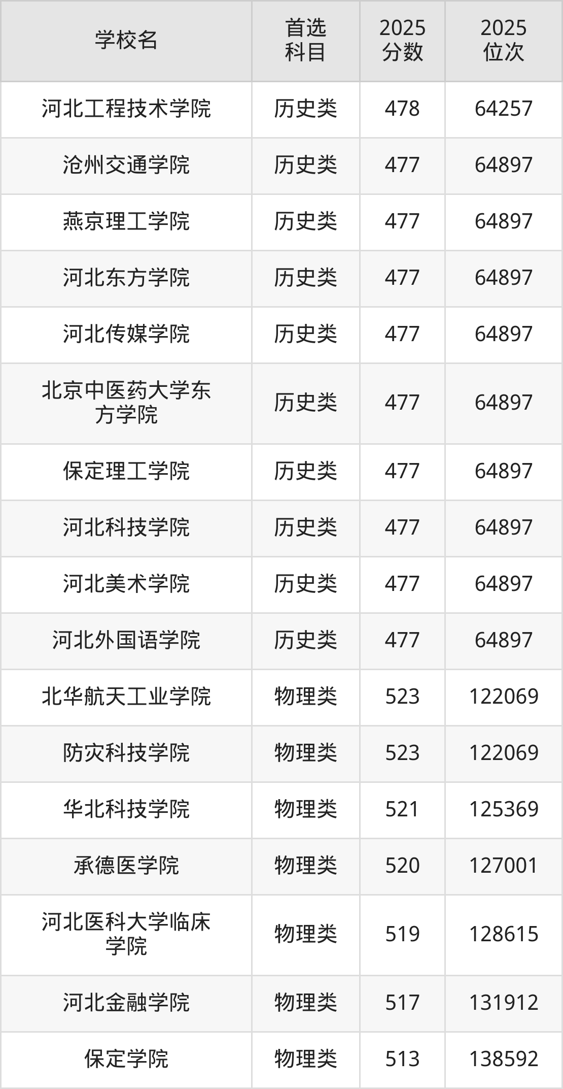 2025年河北省二本大学录取分数线一览表完整版,请查看: