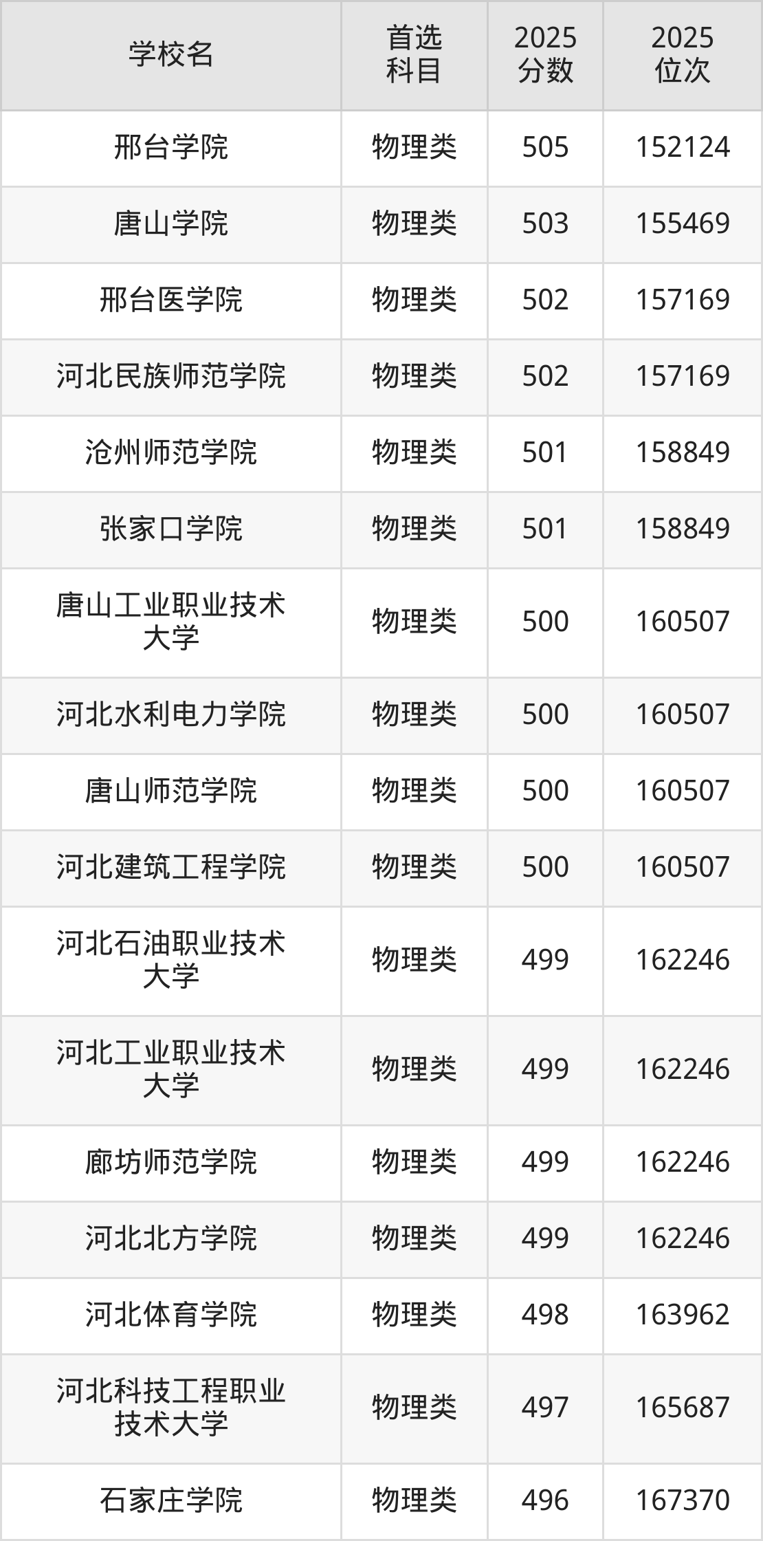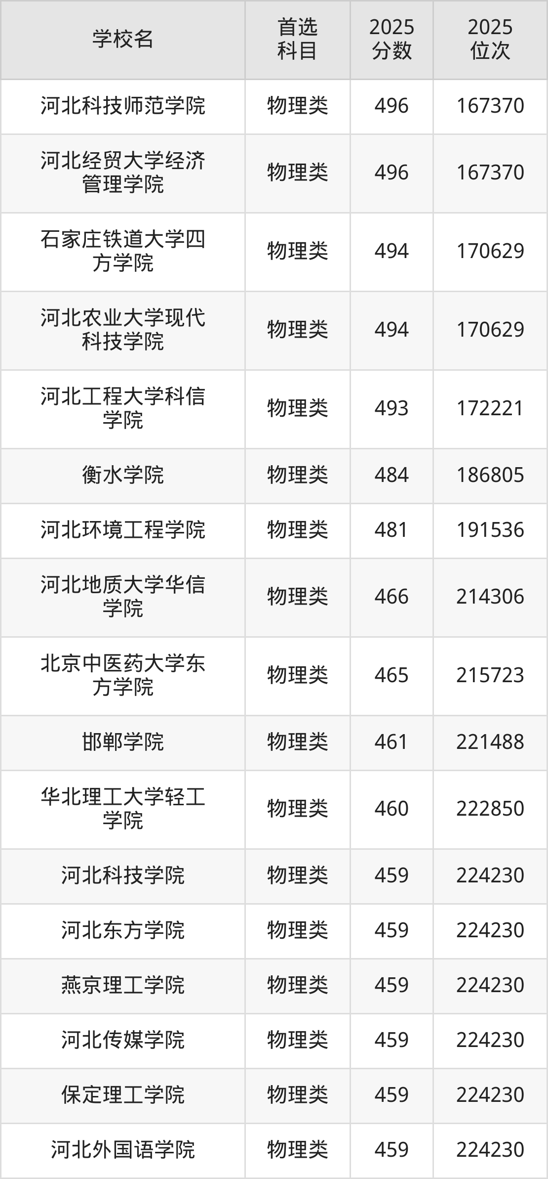 2025年河北二本大学最低录取分数线是459分,收分最低的学校为河北科技学院。
