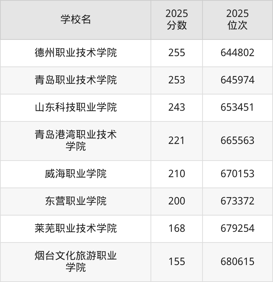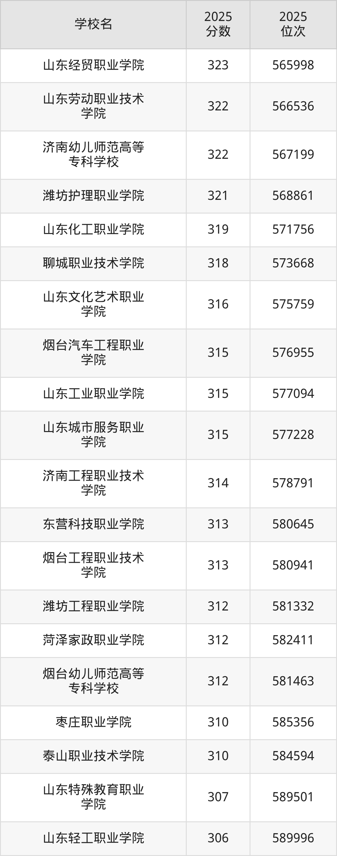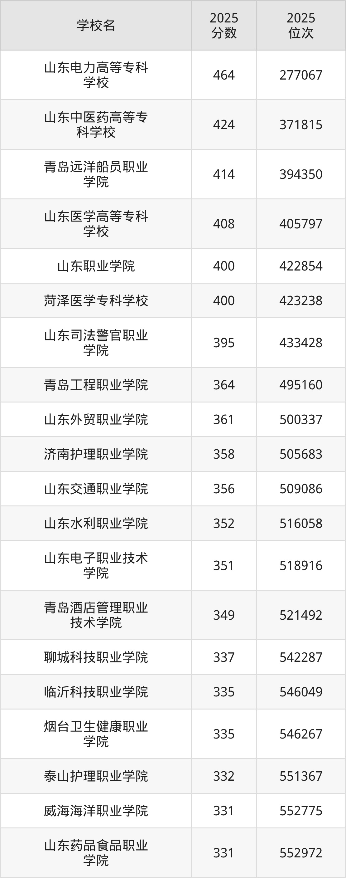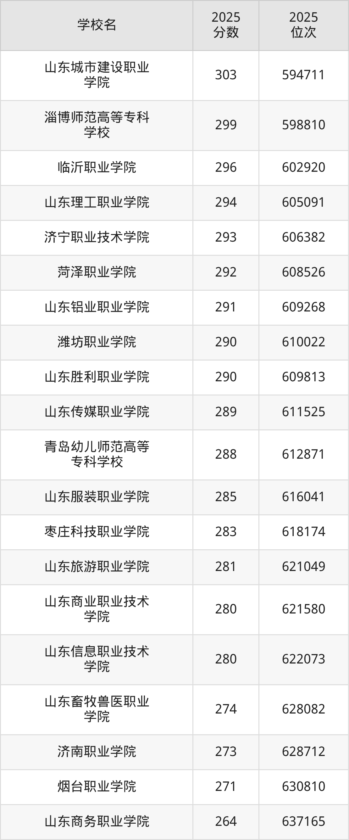 2025年山东省公办大专录取分数线一览表完整版,请查看: