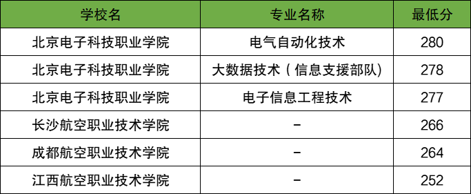 2024年天津市定向士官分数线如下:江西航空职业技术学院最低分252分;成都航空职业技术学院最低分264分。