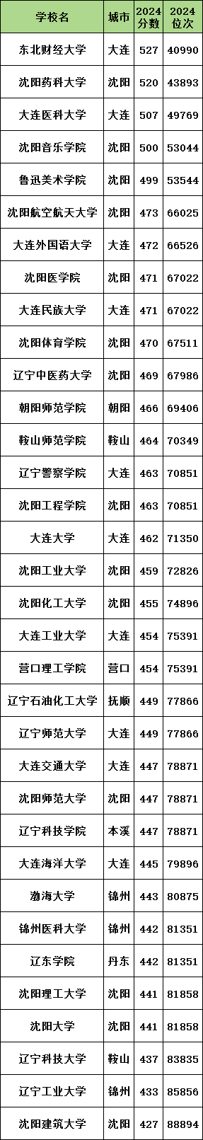 2024年辽宁物理类公办二本大学录取分数线从427分到527分之间,对应最低排位从40990名到88894名。