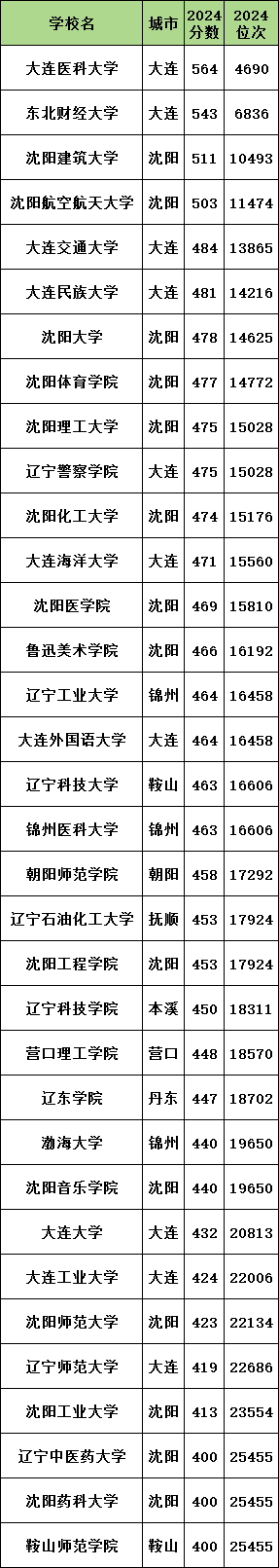 2024年辽宁历史类公办二本大学录取分数线从400分到564分之间,对应最低排位从4690名到25455名。