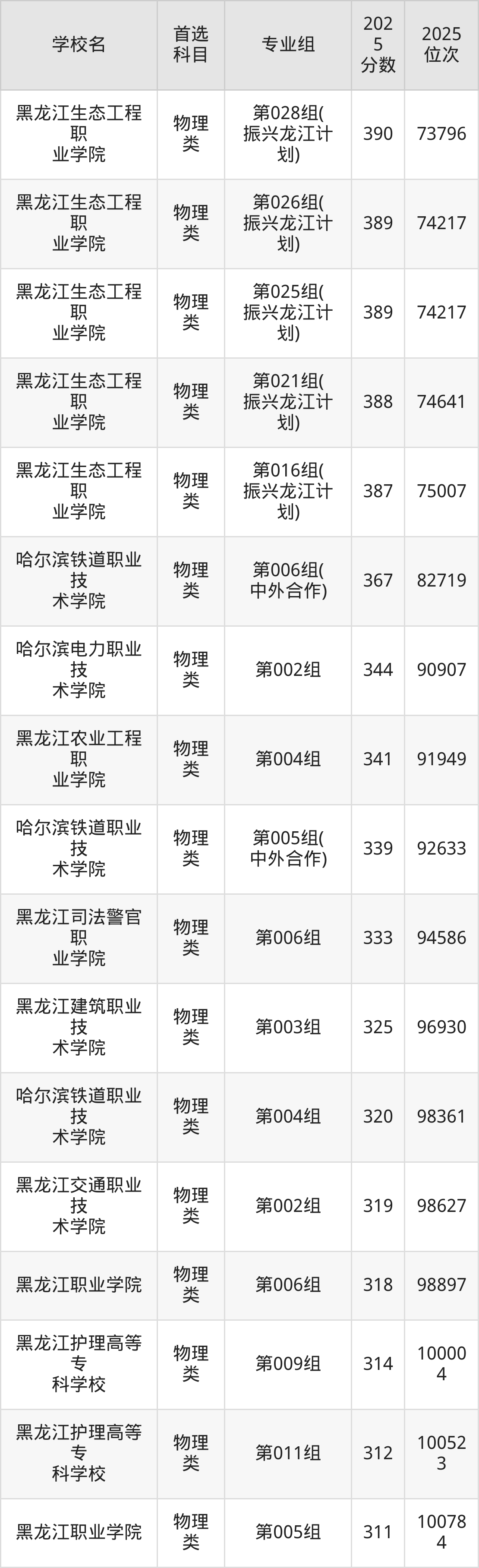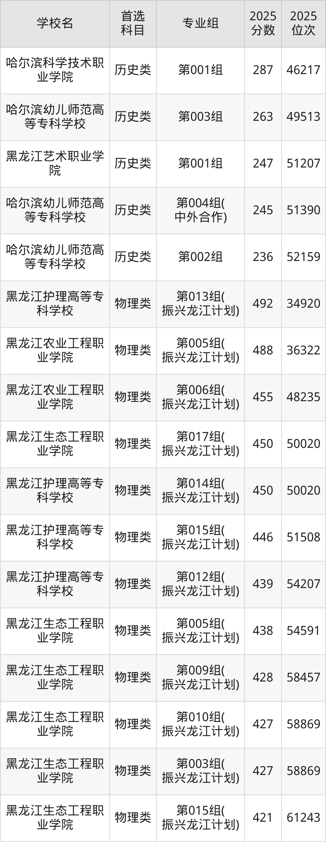 2025年哈尔滨市公办大专录取分数线一览表完整版,请查看:
