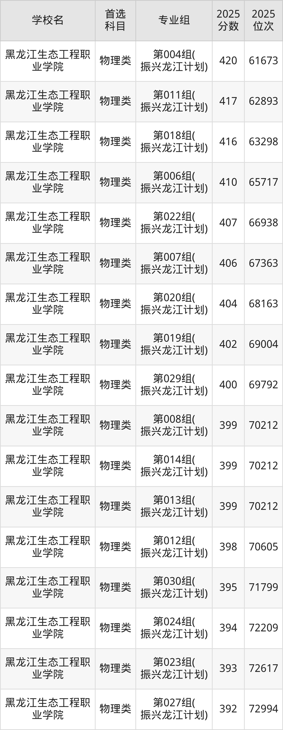 (4)黑龙江生态工程职业学院第017组(振兴龙江计划):450分、50020名;