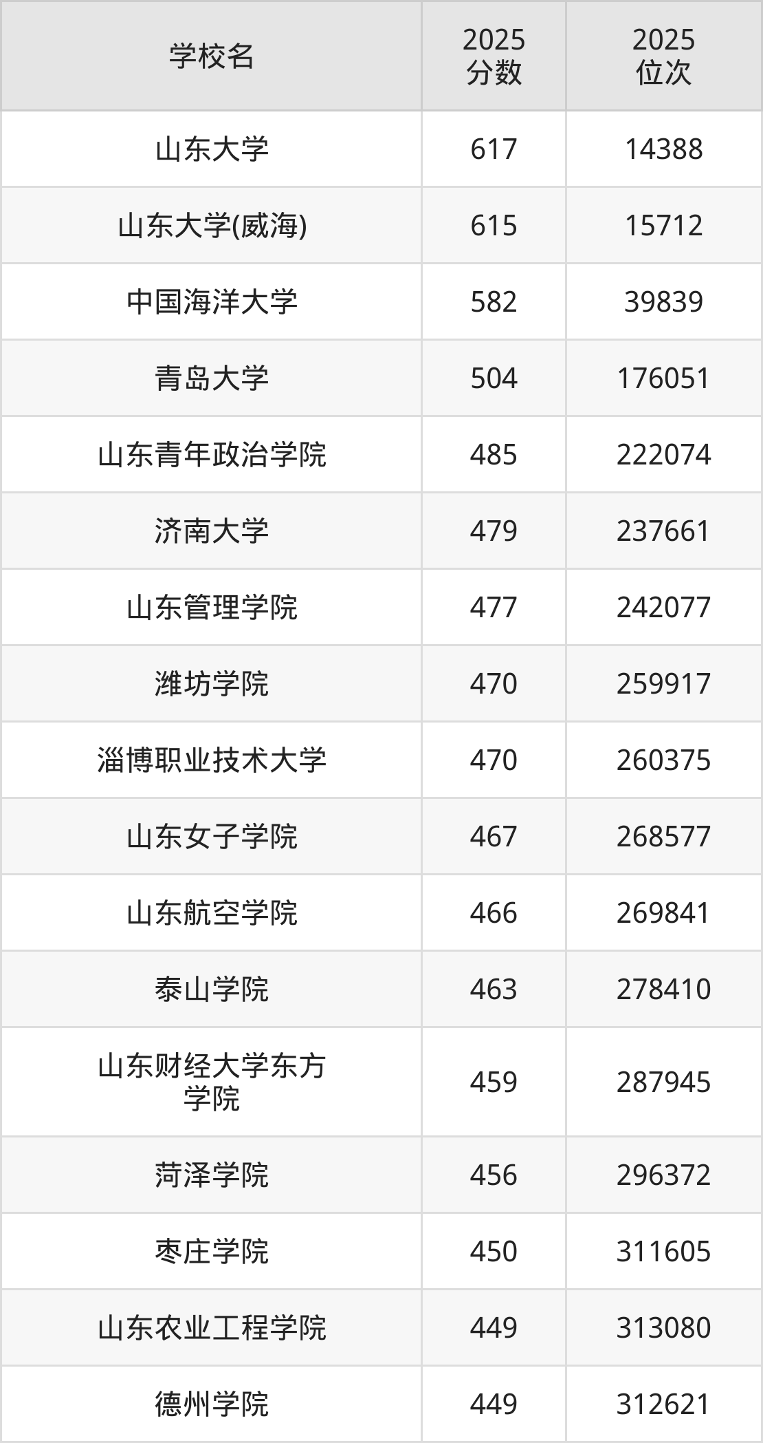 2025年山东省综合类大学录取分数线一览表完整版,请查看: