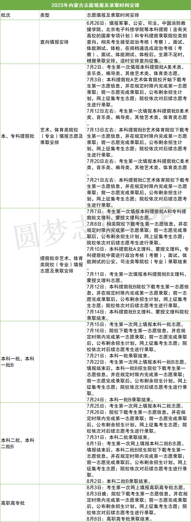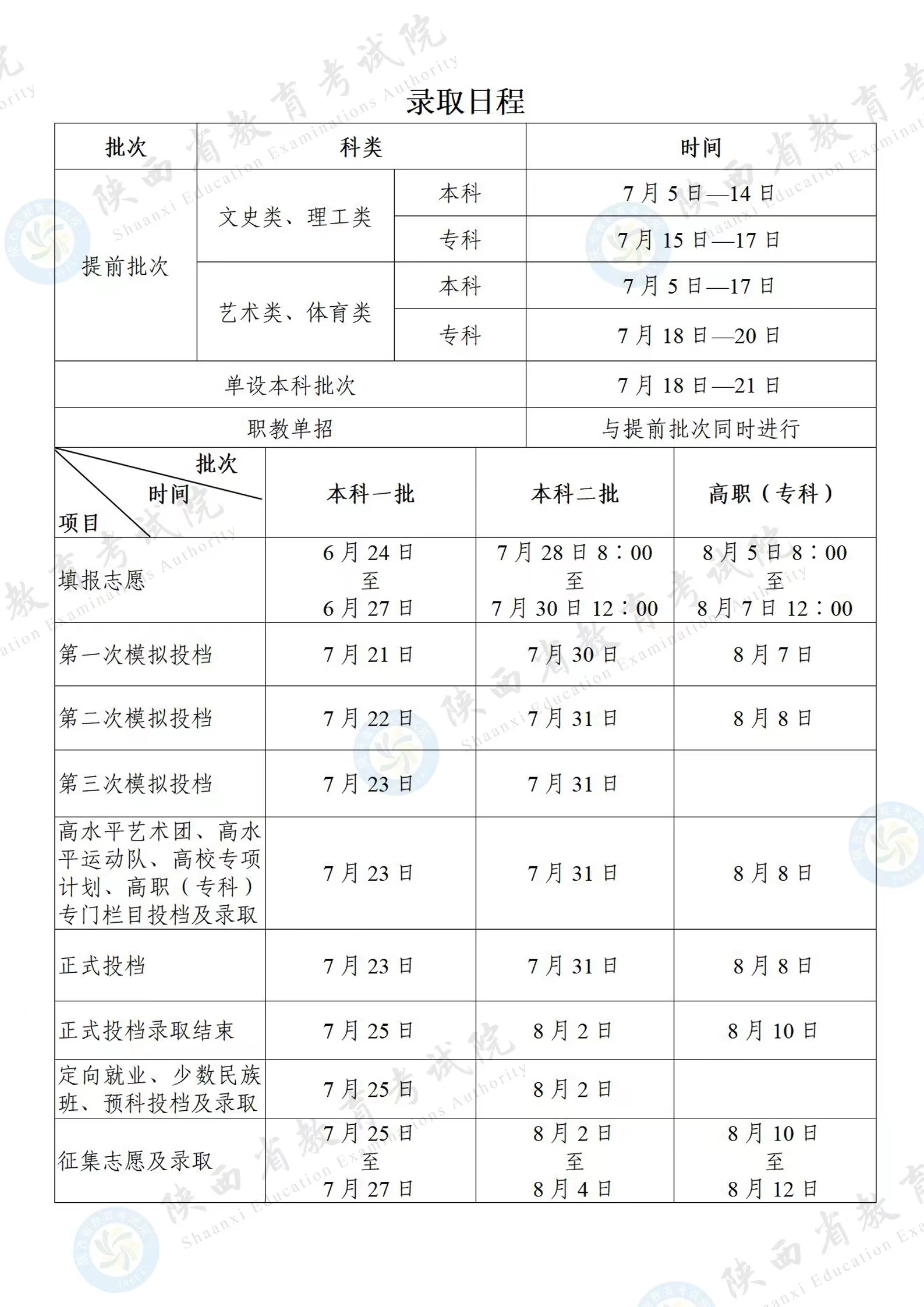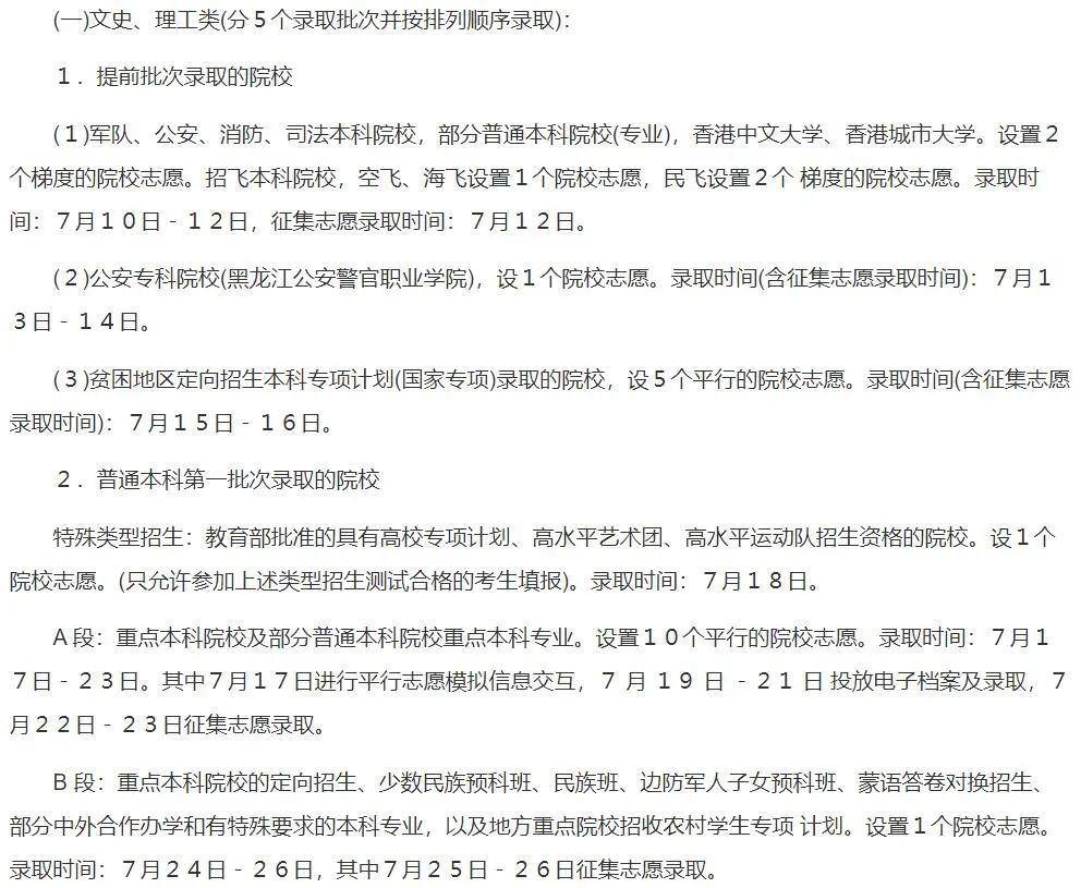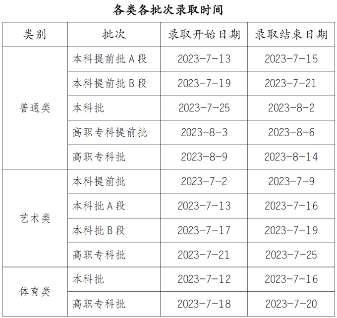 本科提前批次、本科艺体类批次院校录取时间:7月7日-17日