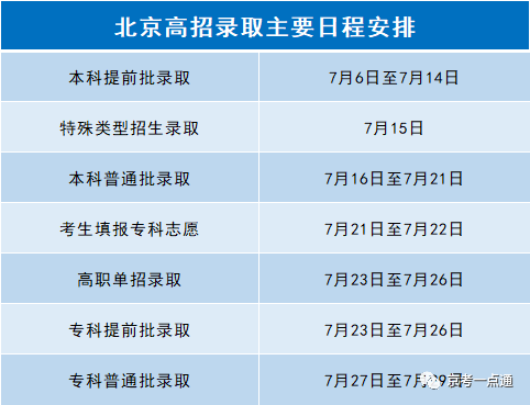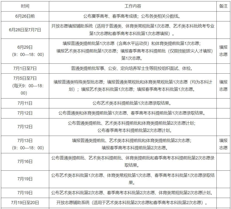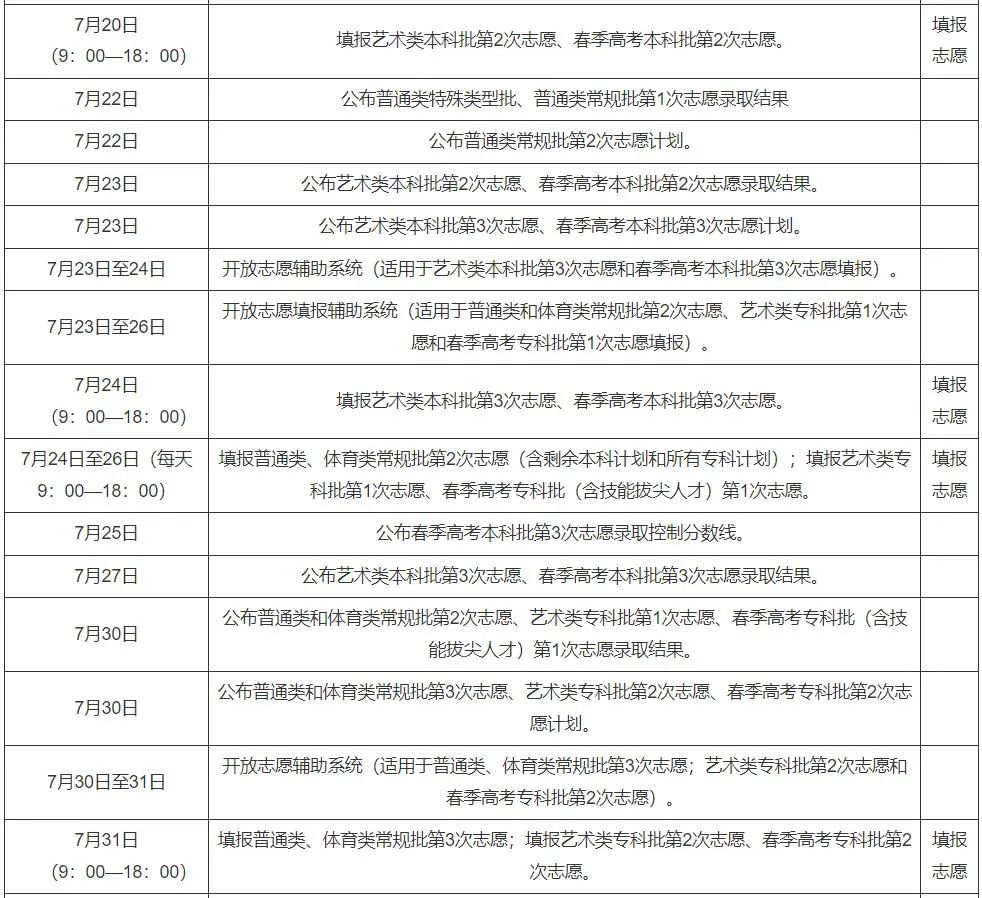 | 7月14-15日 | 高校专项计划及高水平艺术团投档录取 |