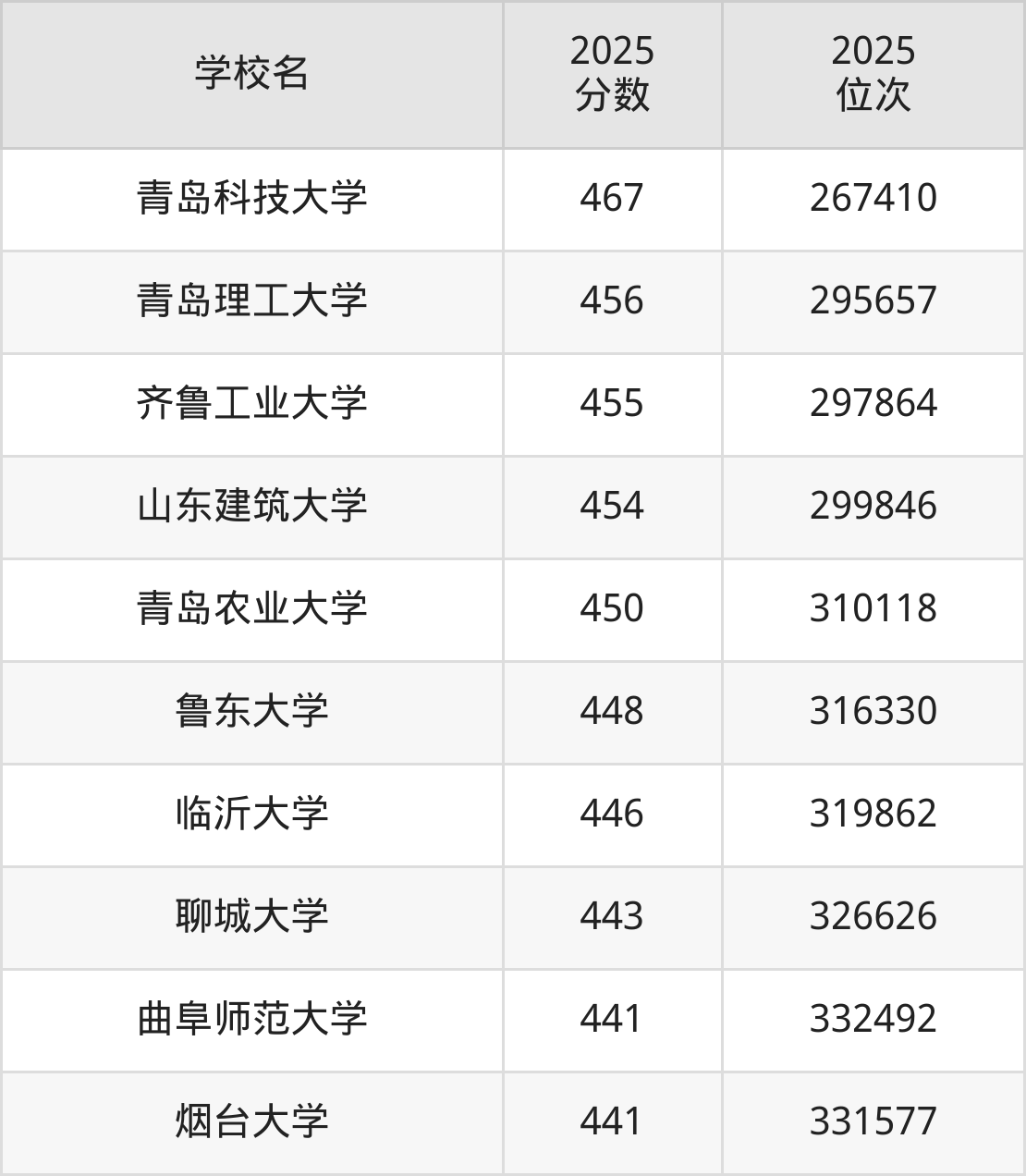 2025年山东本科批次线441分。因此山东考生如果想留在省内读一本大学的话,考生刚过本科线就行。