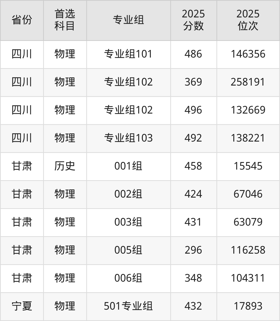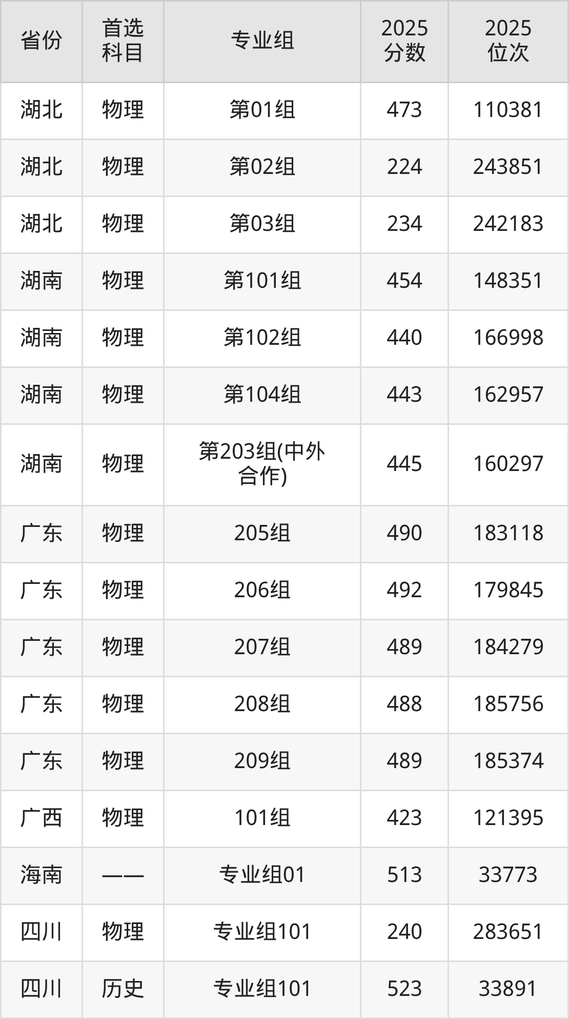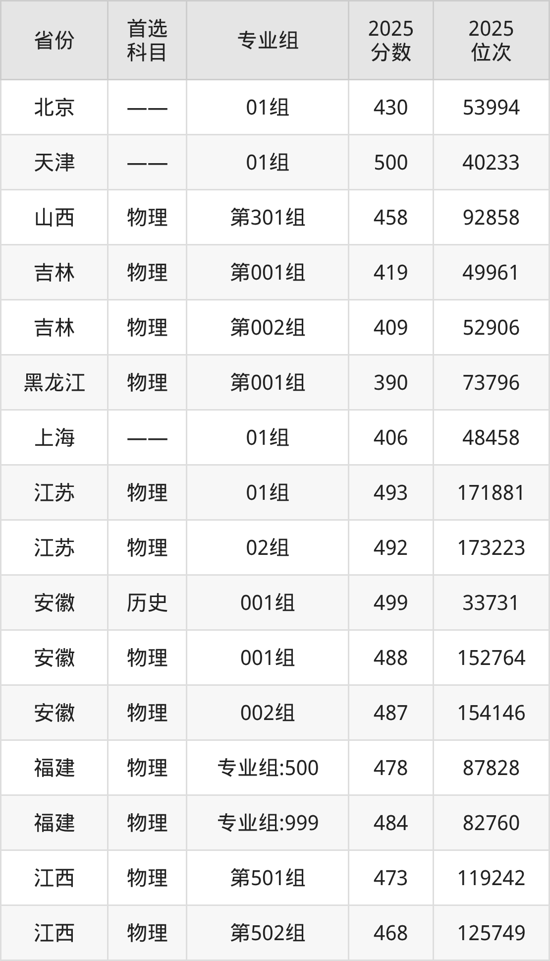因为大部分地区目前只公布了院校(专业组)分数线,为了方便2026年考生参考,本文就整理出新疆工程学院在全国各省不同科类的最低分: