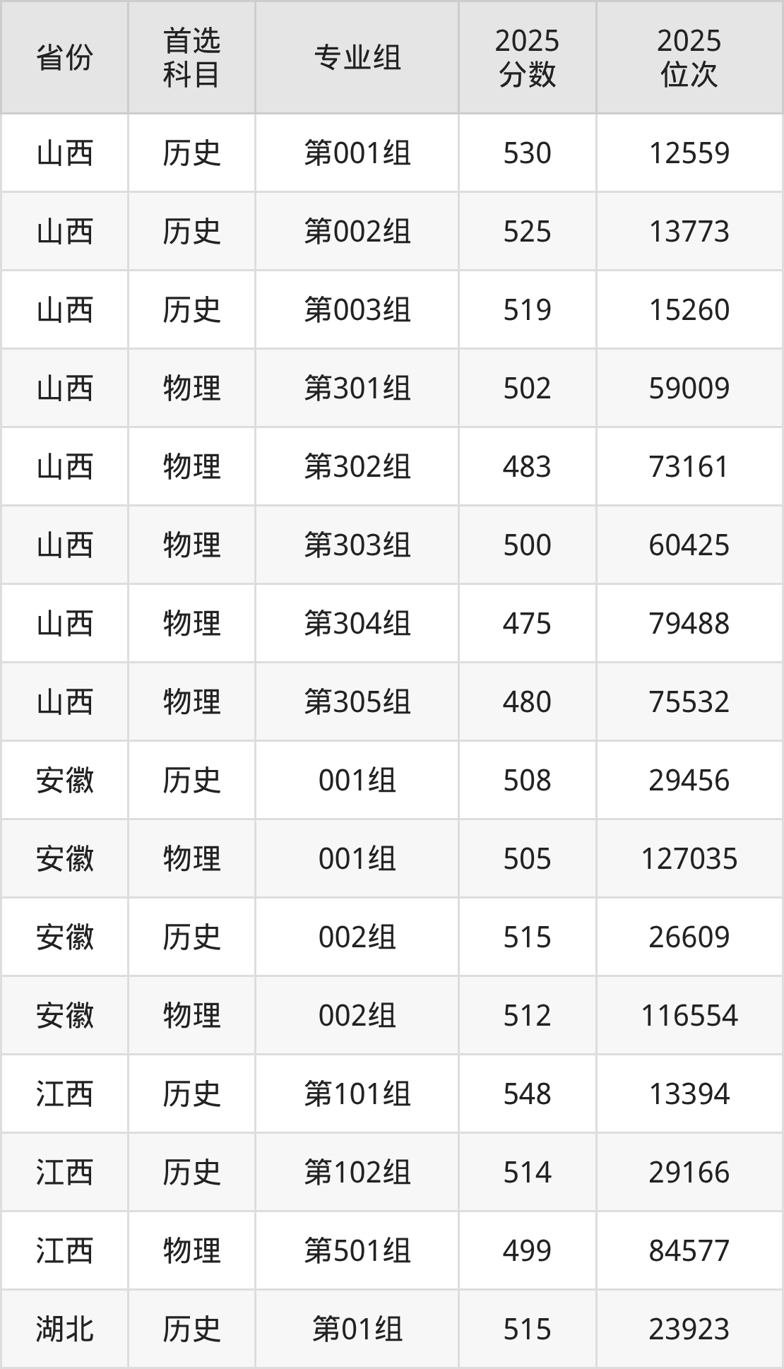 2.山西:历史类519分、15260位,物理类475分、79488位
