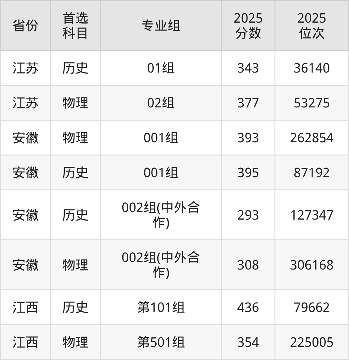 因为大部分地区目前只公布了院校(专业组)分数线,为了方便2026年考生参考,本文就整理出滁州城市职业学院在全国各省不同科类的最低分: