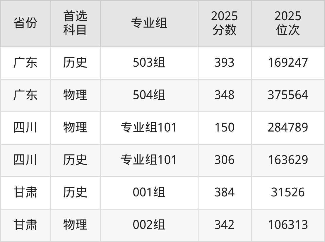 因为大部分地区目前只公布了院校(专业组)分数线,为了方便2026年考生参考,本文就整理出湖南民族职业学院在全国各省不同科类的最低分: