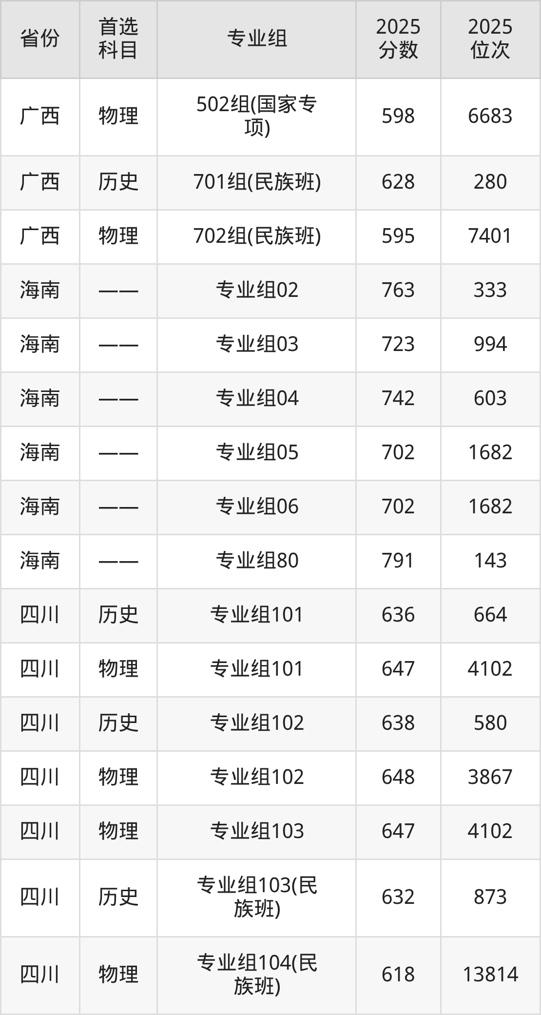 因为大部分地区目前只公布了院校(专业组)分数线,为了方便2026年考生参考,本文就整理出中山大学在全国各省不同科类的最低分: