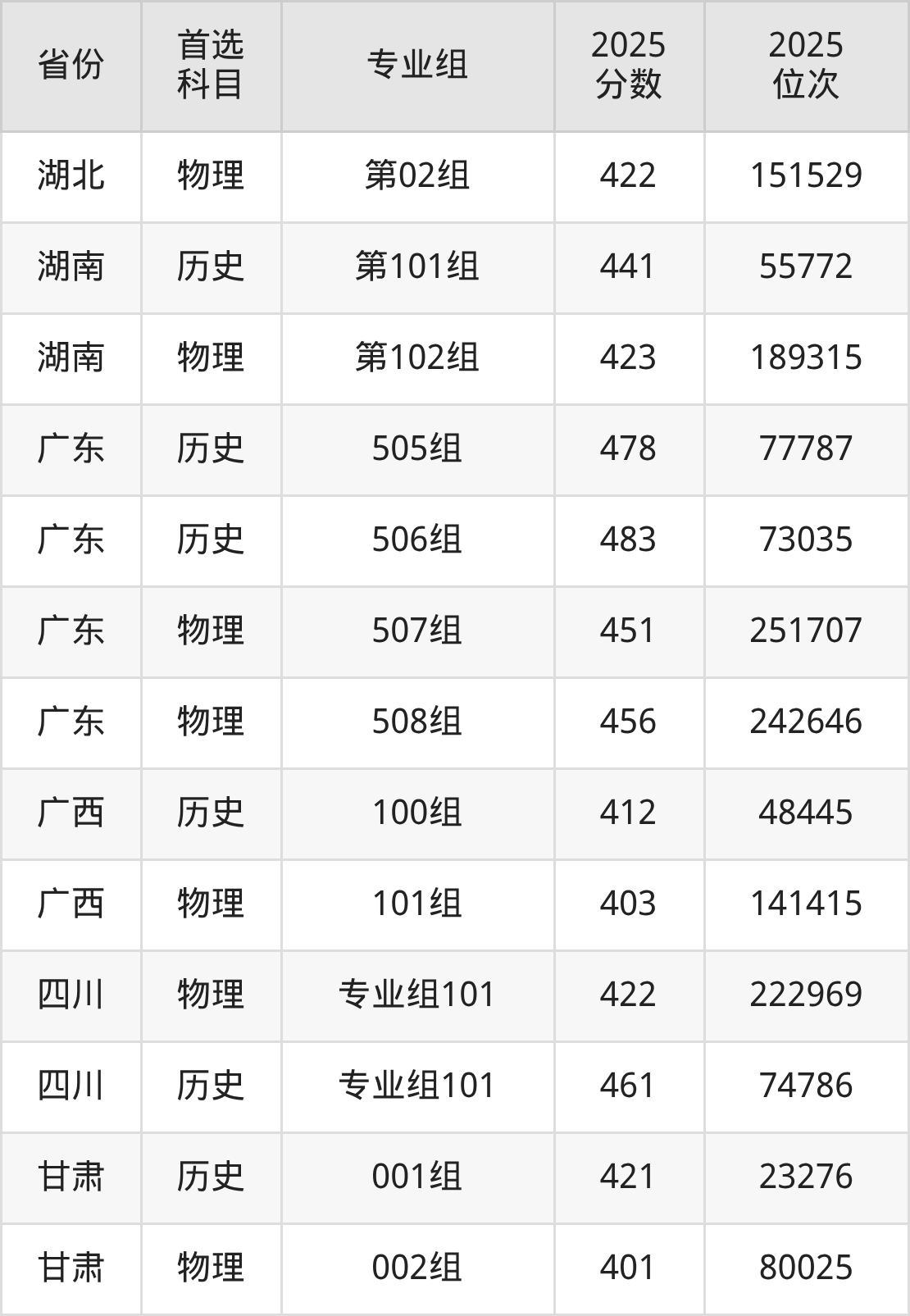因为大部分地区目前只公布了院校(专业组)分数线,为了方便2026年考生参考,本文就整理出湖南高速铁路职业技术学院在全国各省不同科类的最低分: