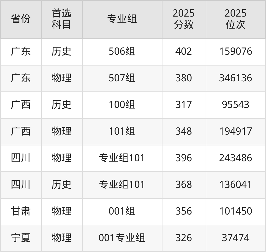 因为大部分地区目前只公布了院校(专业组)分数线,为了方便2026年考生参考,本文就整理出海南软件职业技术学院在全国各省不同科类的最低分: