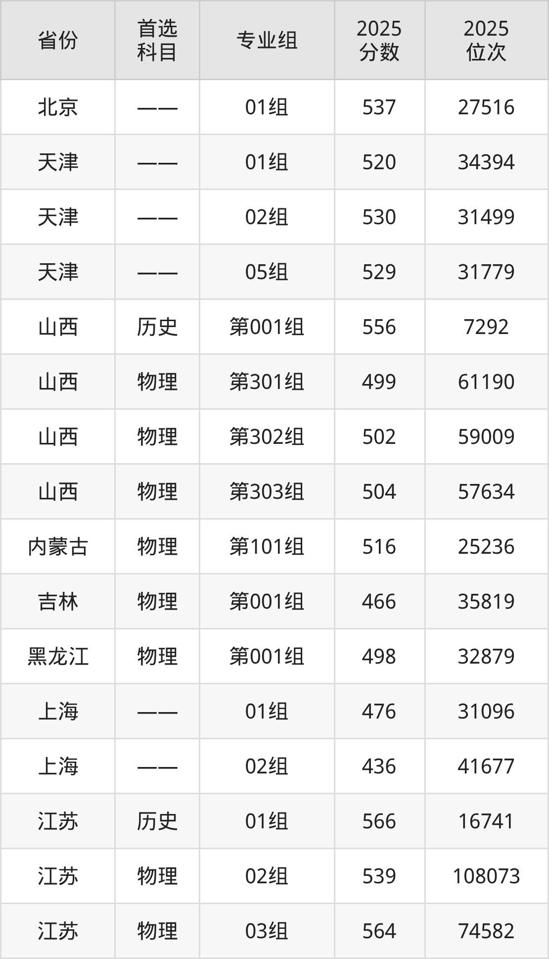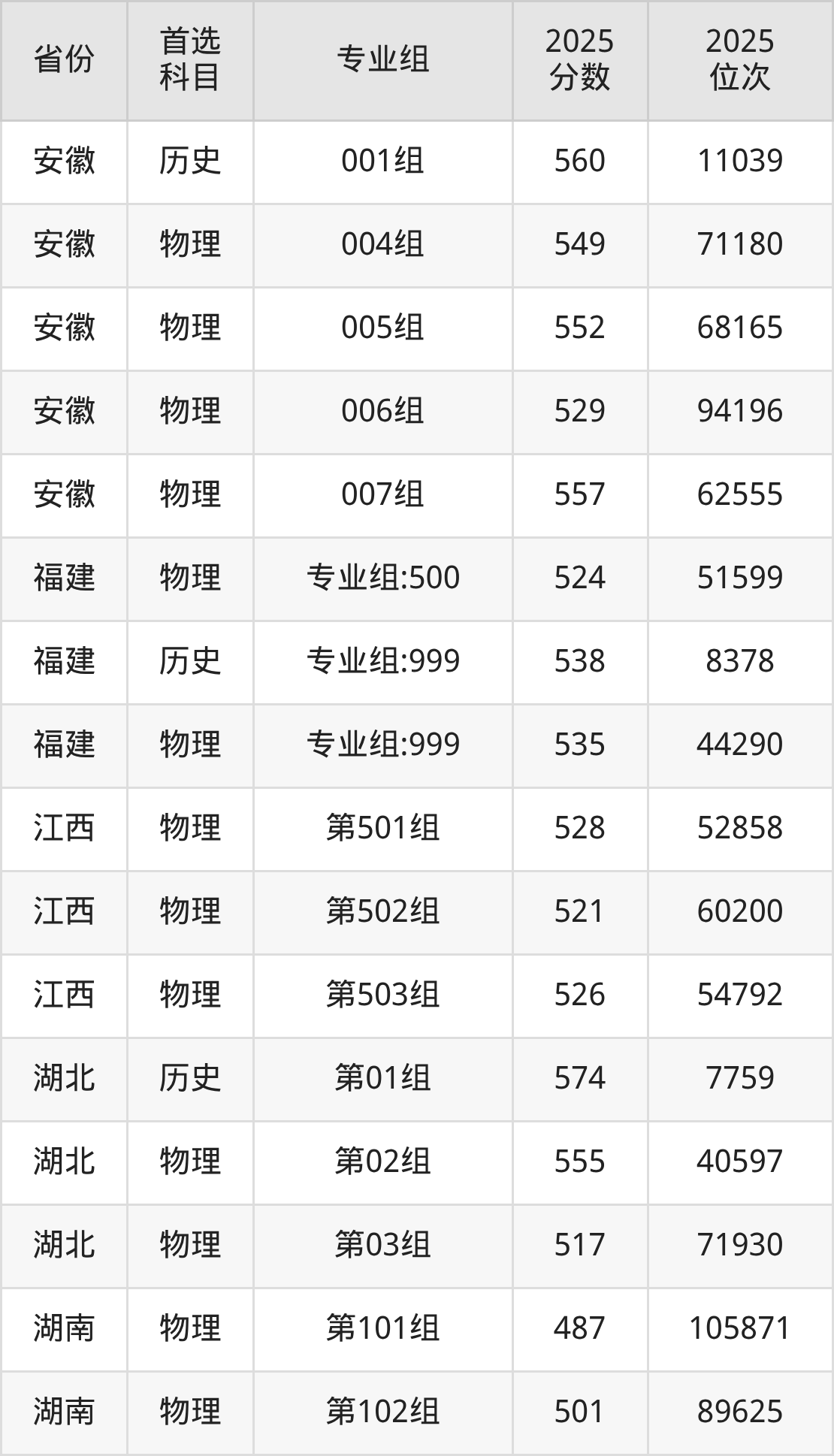 因为大部分地区目前只公布了院校(专业组)分数线,为了方便2026年考生参考,本文就整理出安徽农业大学在全国各省不同科类的最低分: