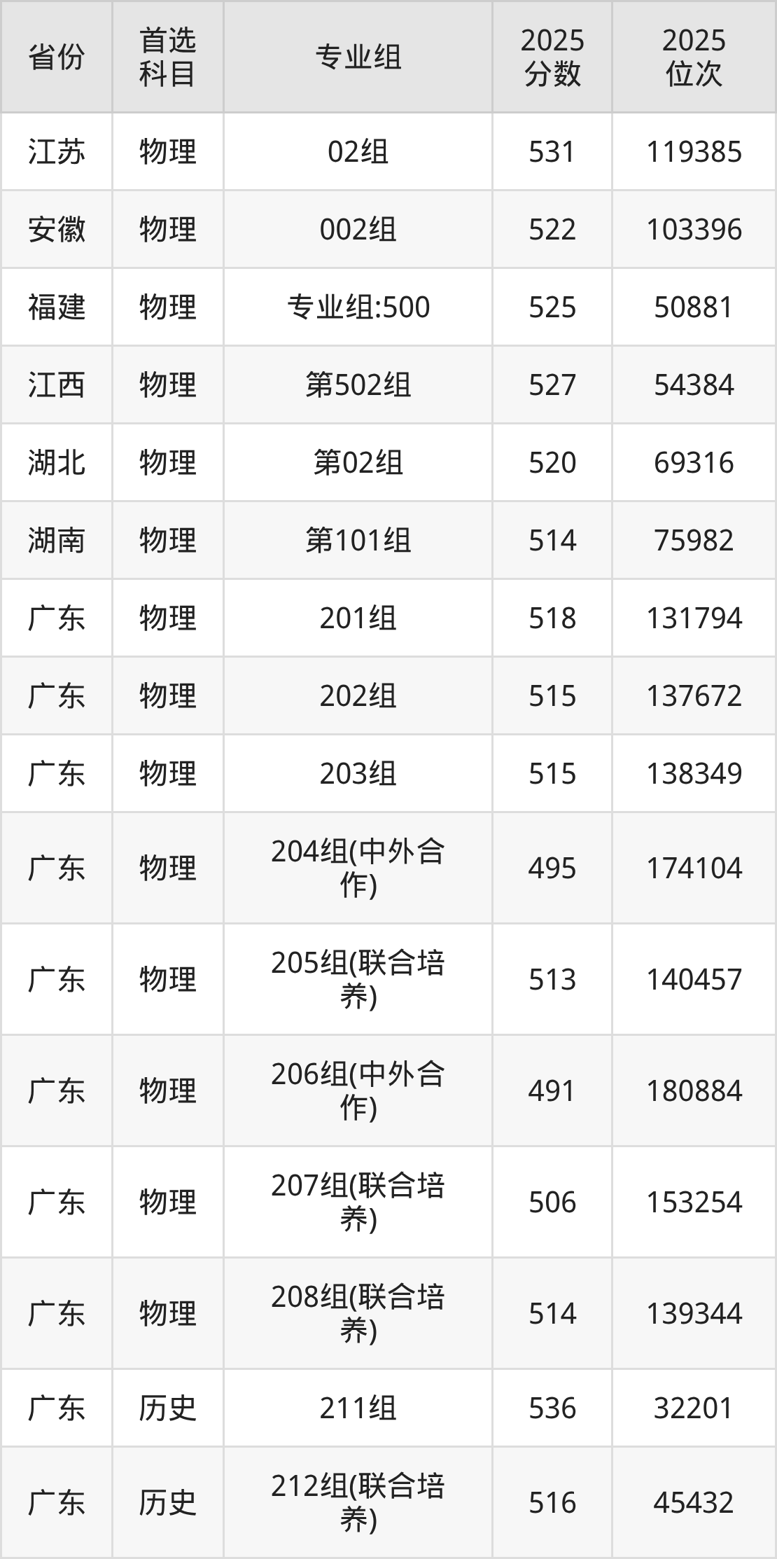 因为大部分地区目前只公布了院校(专业组)分数线,为了方便2026年考生参考,本文就整理出广州航海学院在全国各省不同科类的最低分: