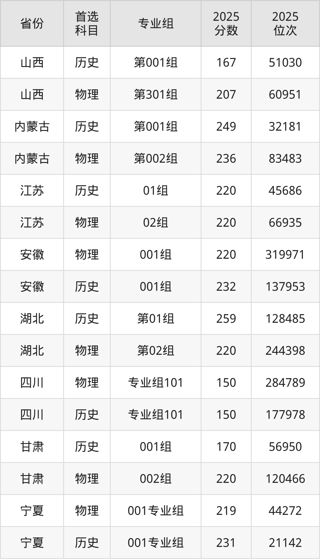 因为大部分地区目前只公布了院校(专业组)分数线,为了方便2026年考生参考,本文就整理出西安城市建设职业学院在全国各省不同科类的最低分: