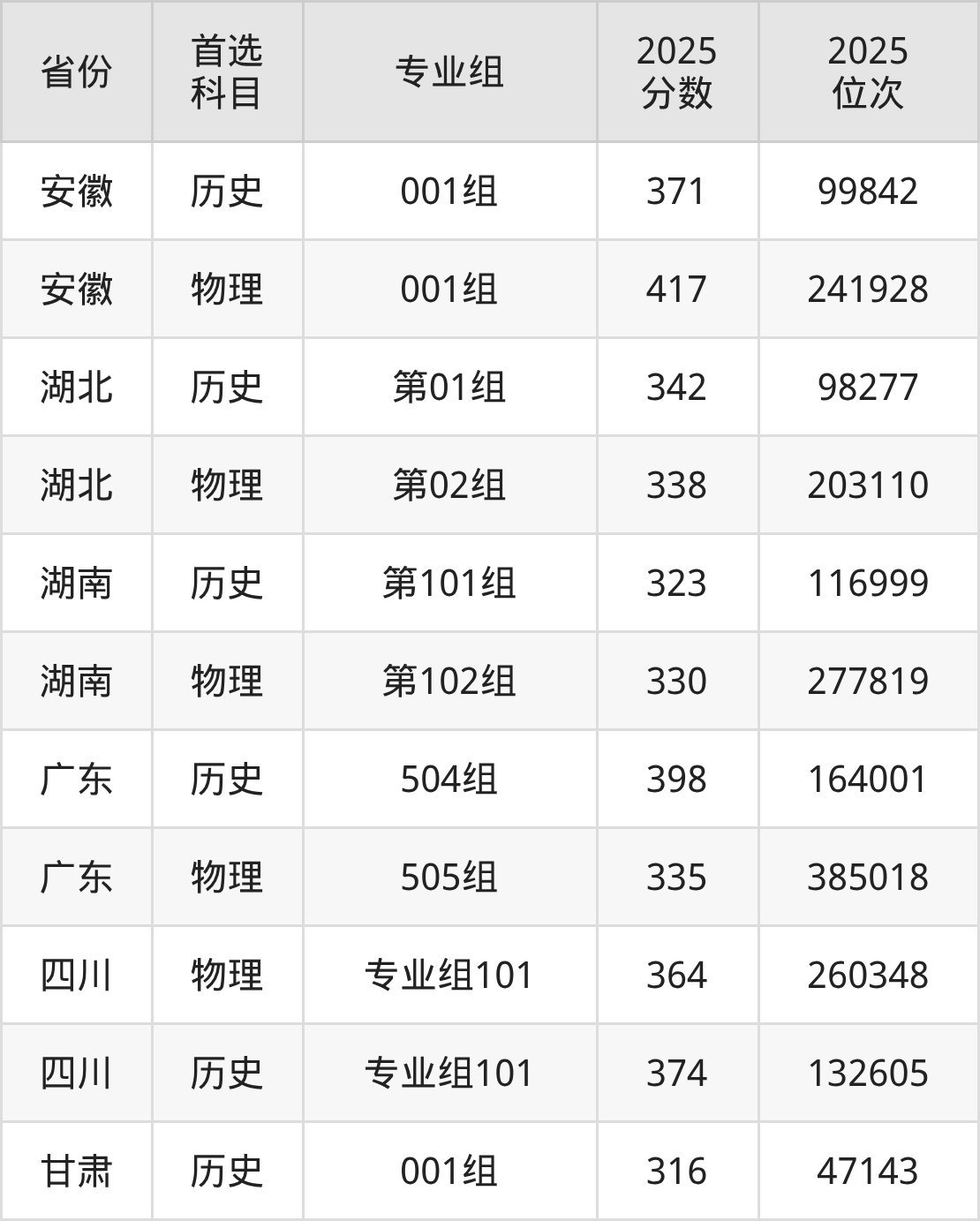 5.湖南:历史类323分、116999位,物理类330分、277819位
