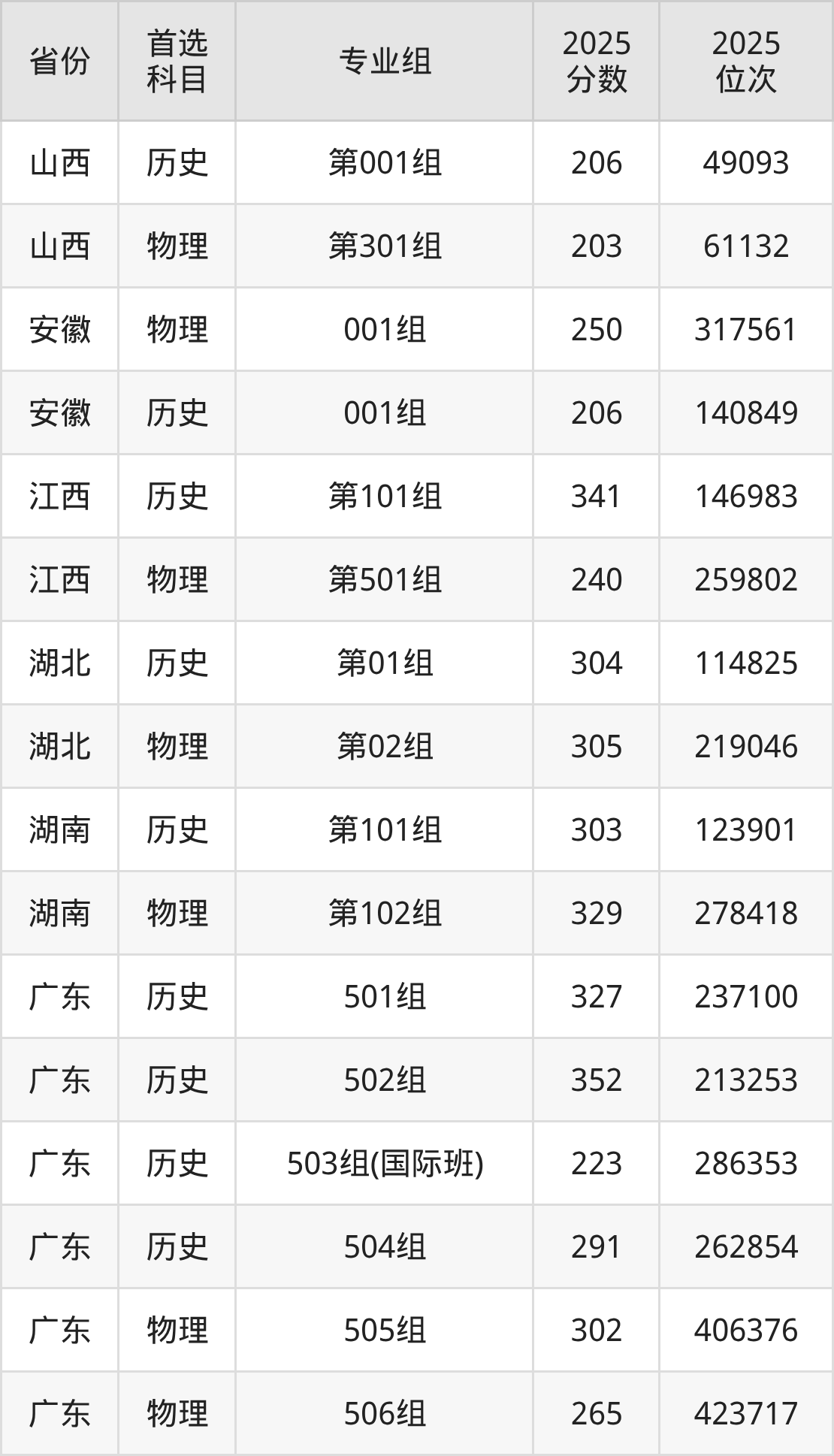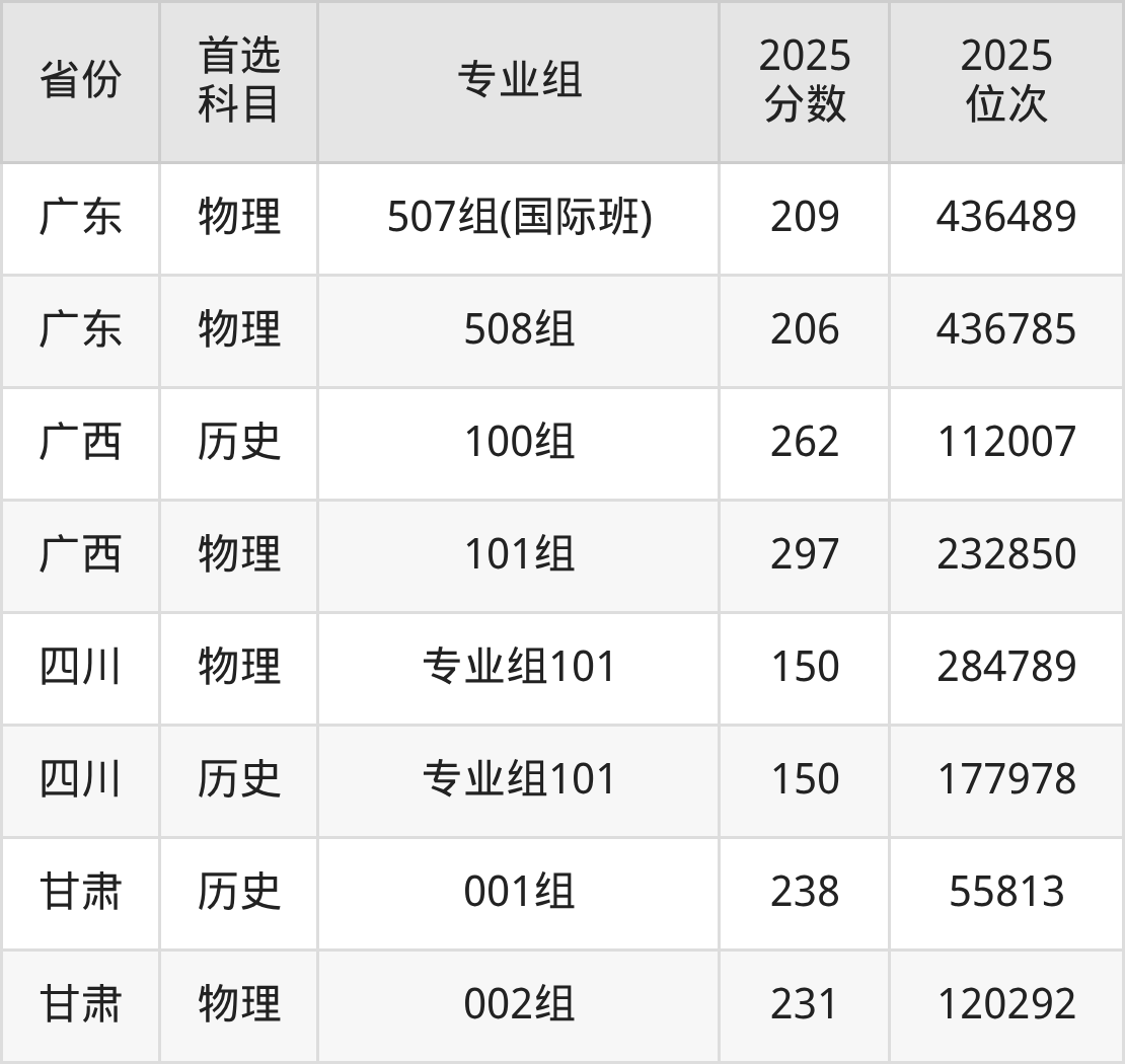 因为大部分地区目前只公布了院校(专业组)分数线,为了方便2026年考生参考,本文就整理出广州南洋理工职业学院在全国各省不同科类的最低分:
