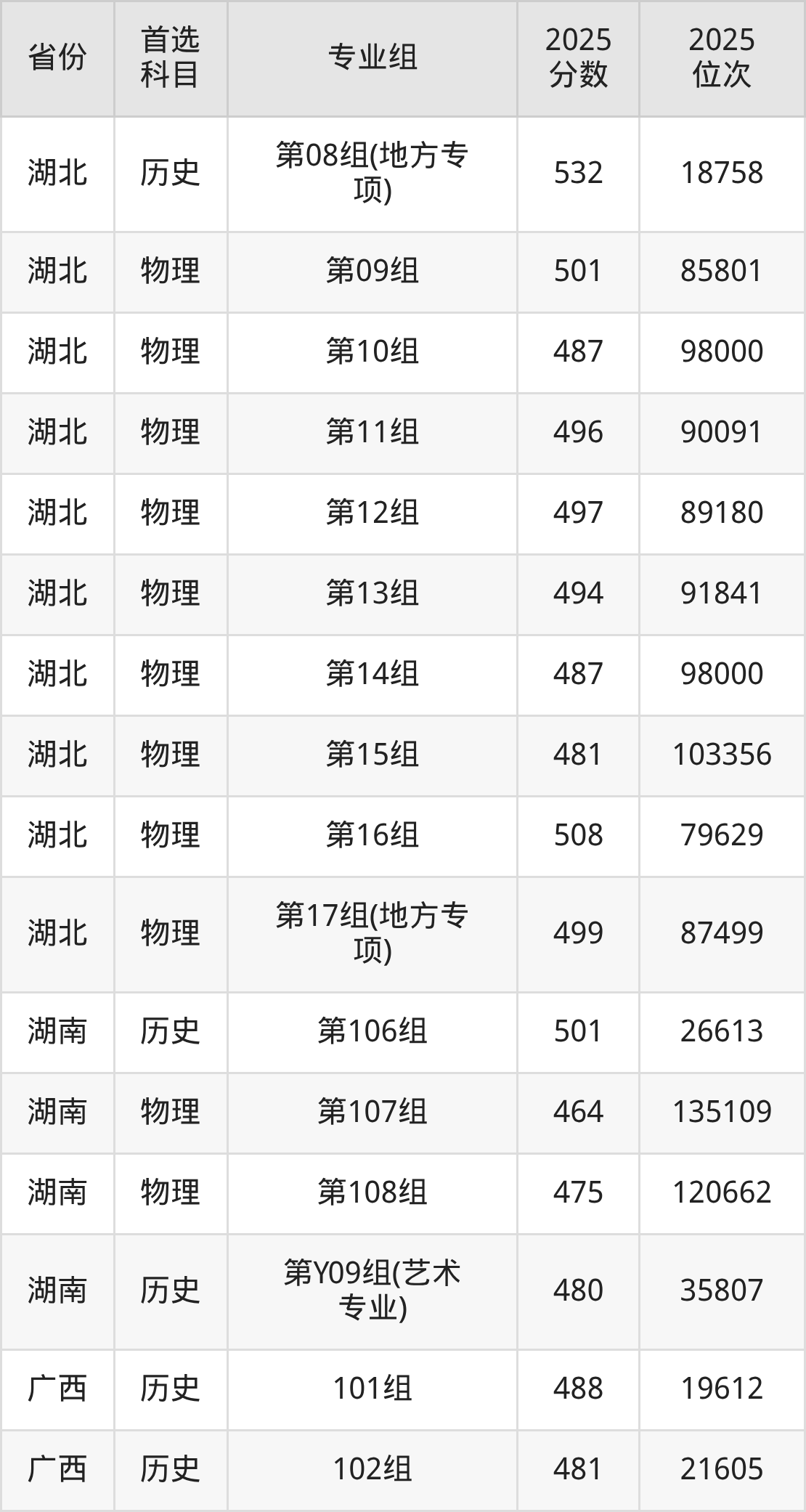 因为大部分地区目前只公布了院校(专业组)分数线,为了方便2026年考生参考,本文就整理出黄冈师范学院在全国各省不同科类的最低分: