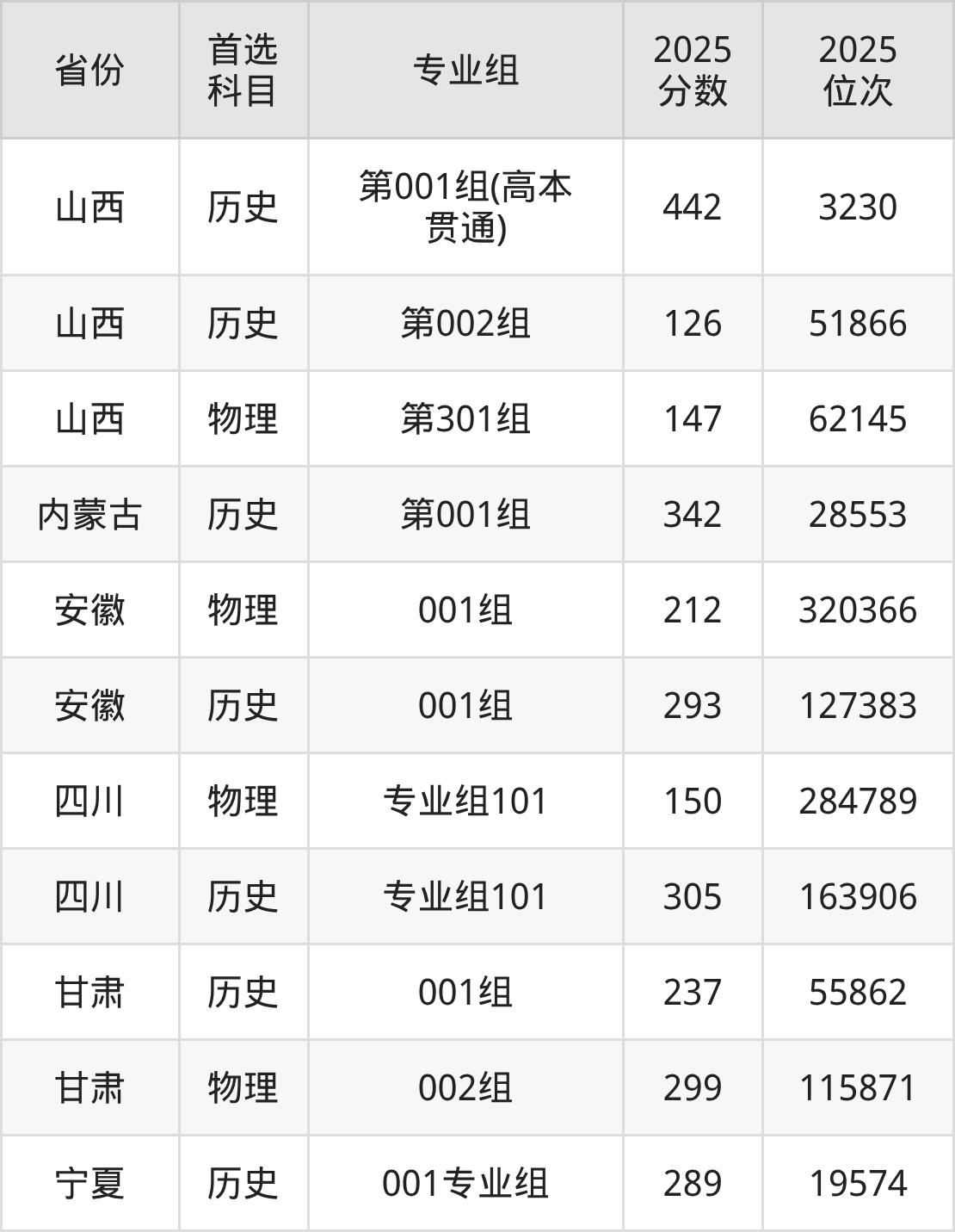 7.四川:历史类305分、163906位,物理类150分、284789位