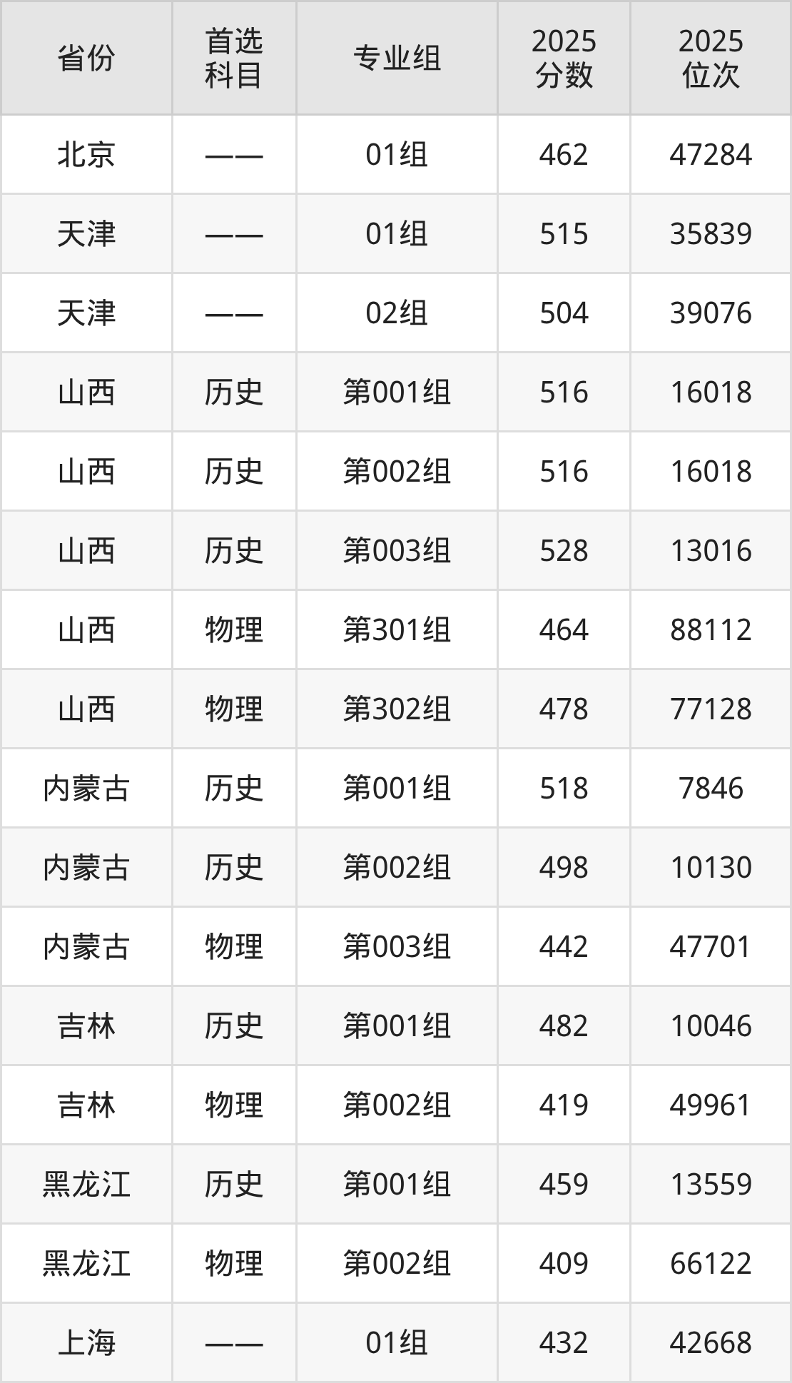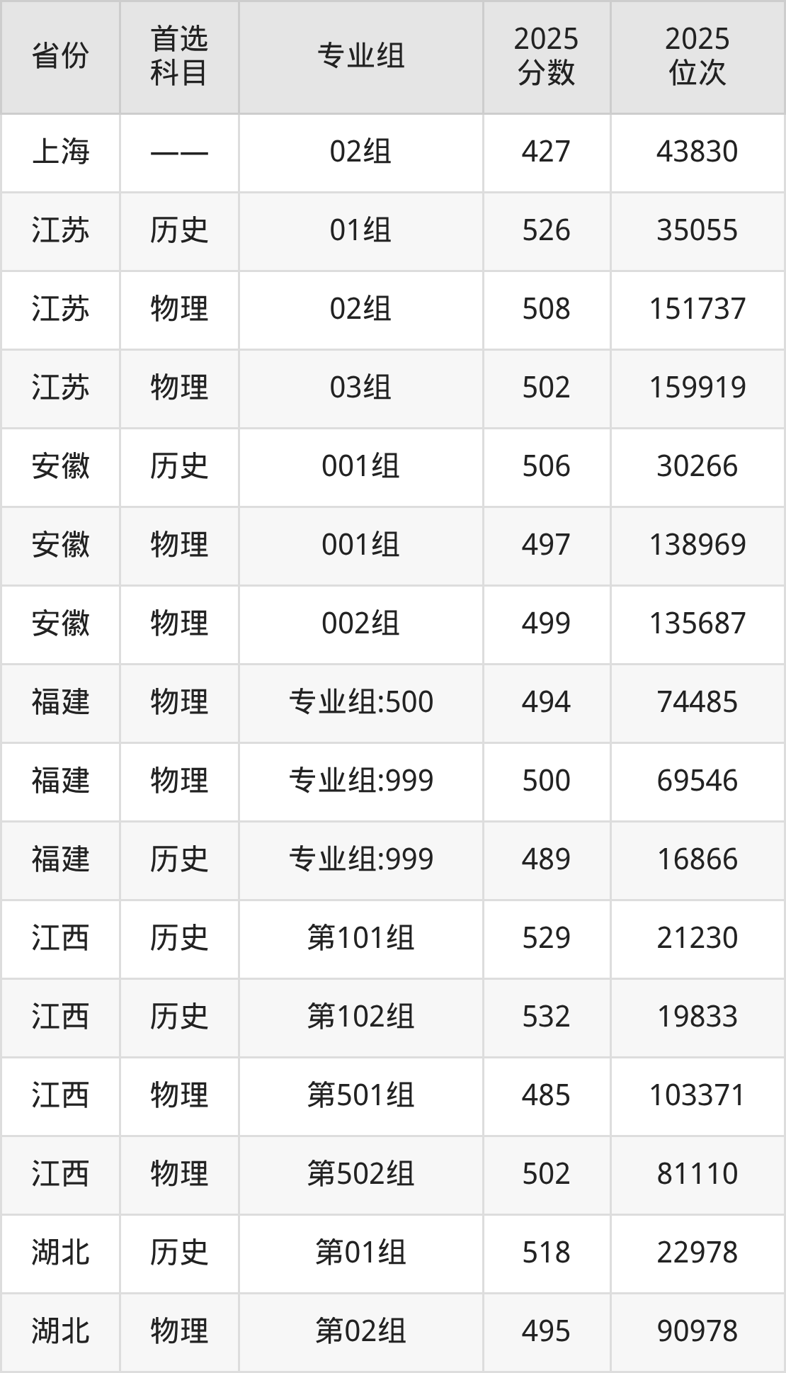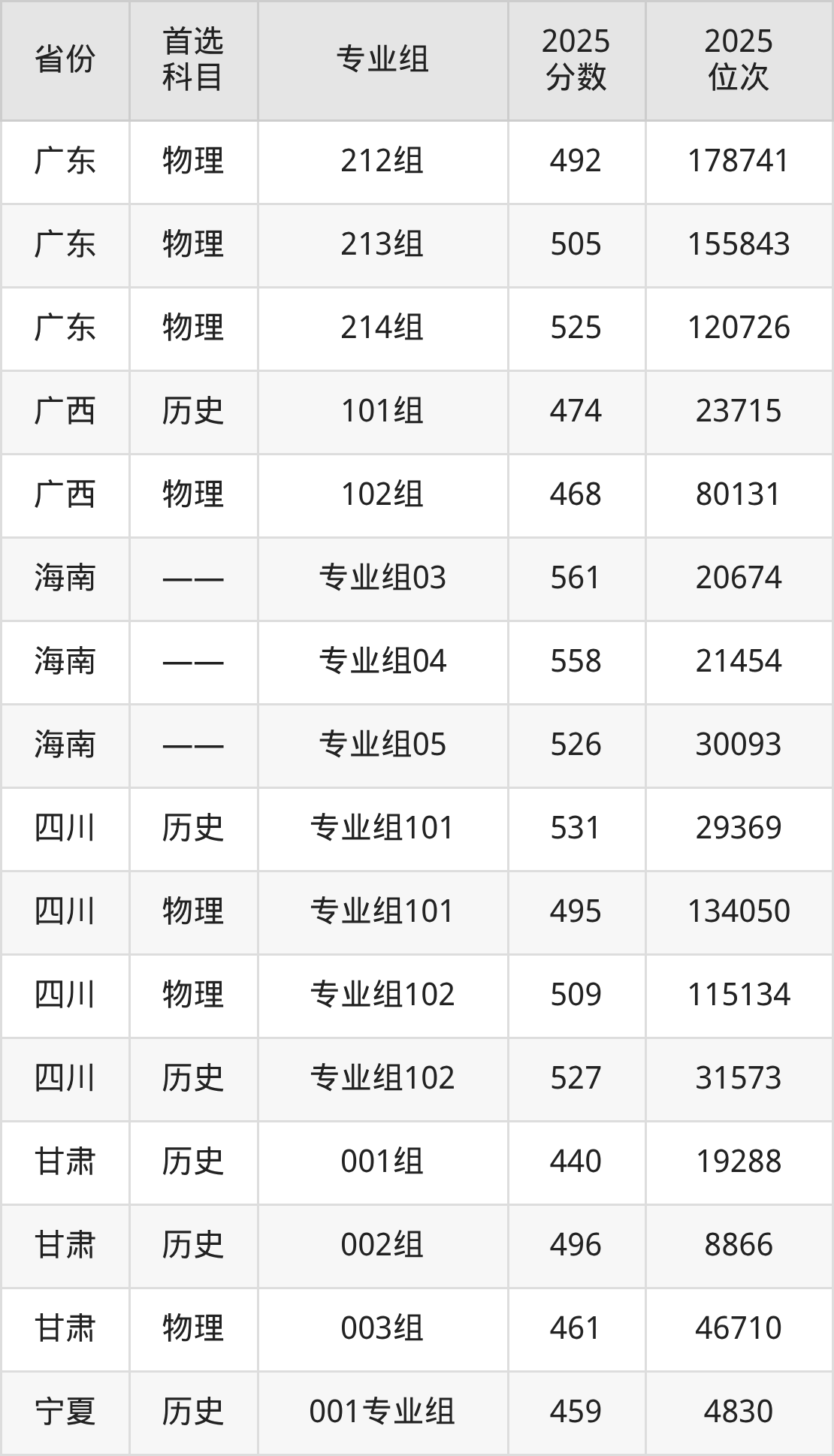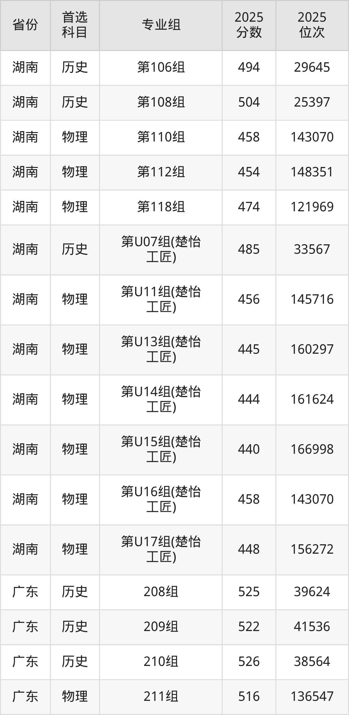 因为大部分地区目前只公布了院校(专业组)分数线,为了方便2026年考生参考,本文就整理出湖南城市学院在全国各省不同科类的最低分: