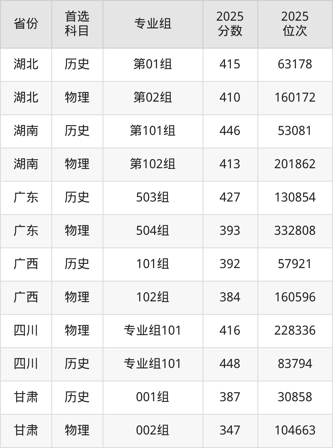 12.广东:物理类393分、332808位,历史类427分、130854位