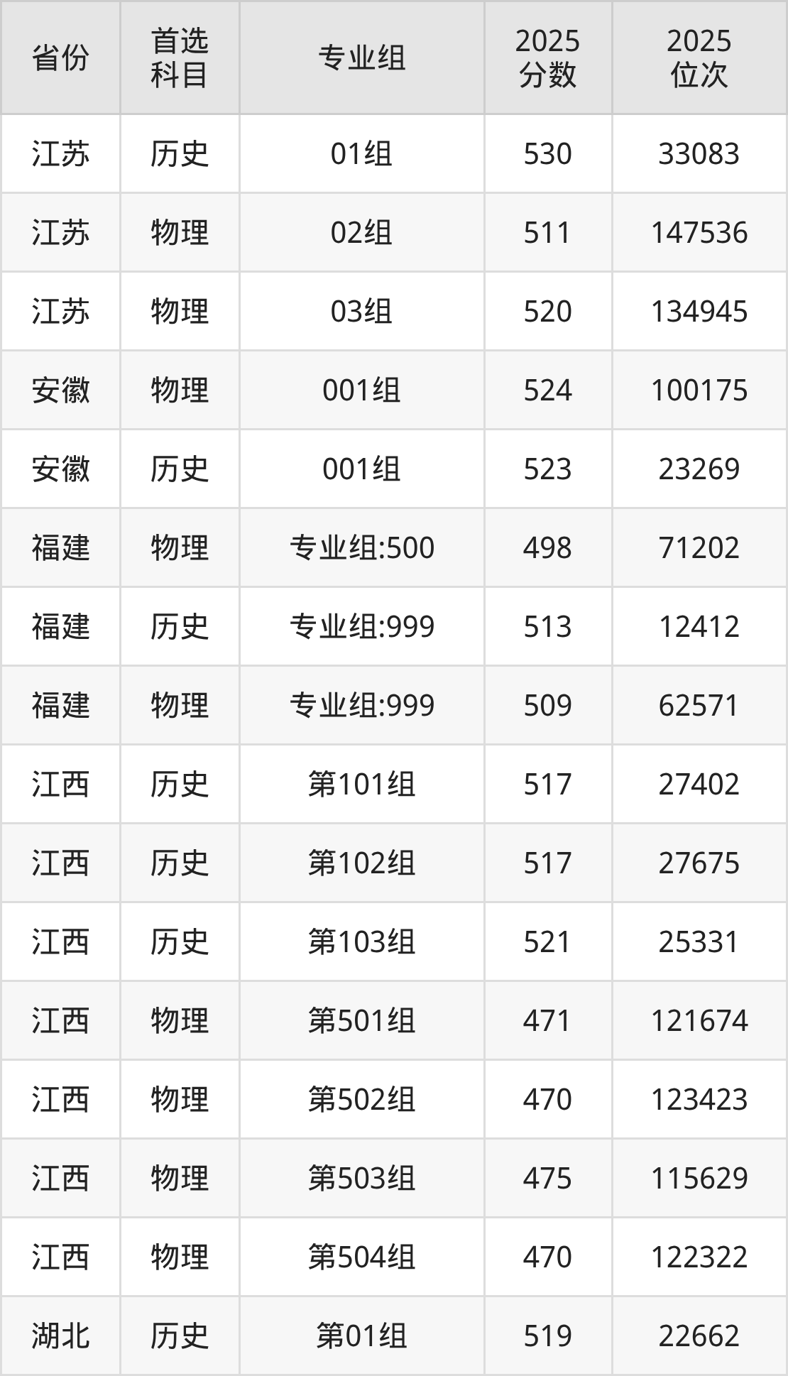 因为大部分地区目前只公布了院校(专业组)分数线,为了方便2026年考生参考,本文就整理出景德镇学院在全国各省不同科类的最低分: