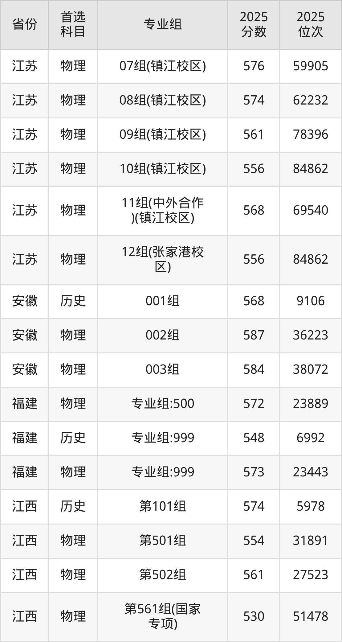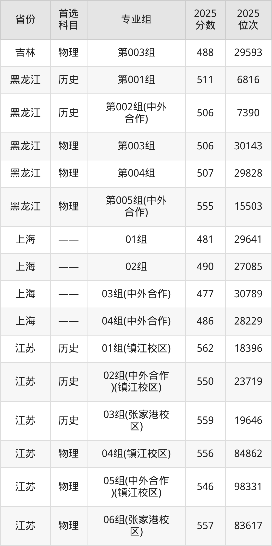 因为大部分地区目前只公布了院校(专业组)分数线,为了方便2026年考生参考,本文就整理出江苏科技大学在全国各省不同科类的最低分: