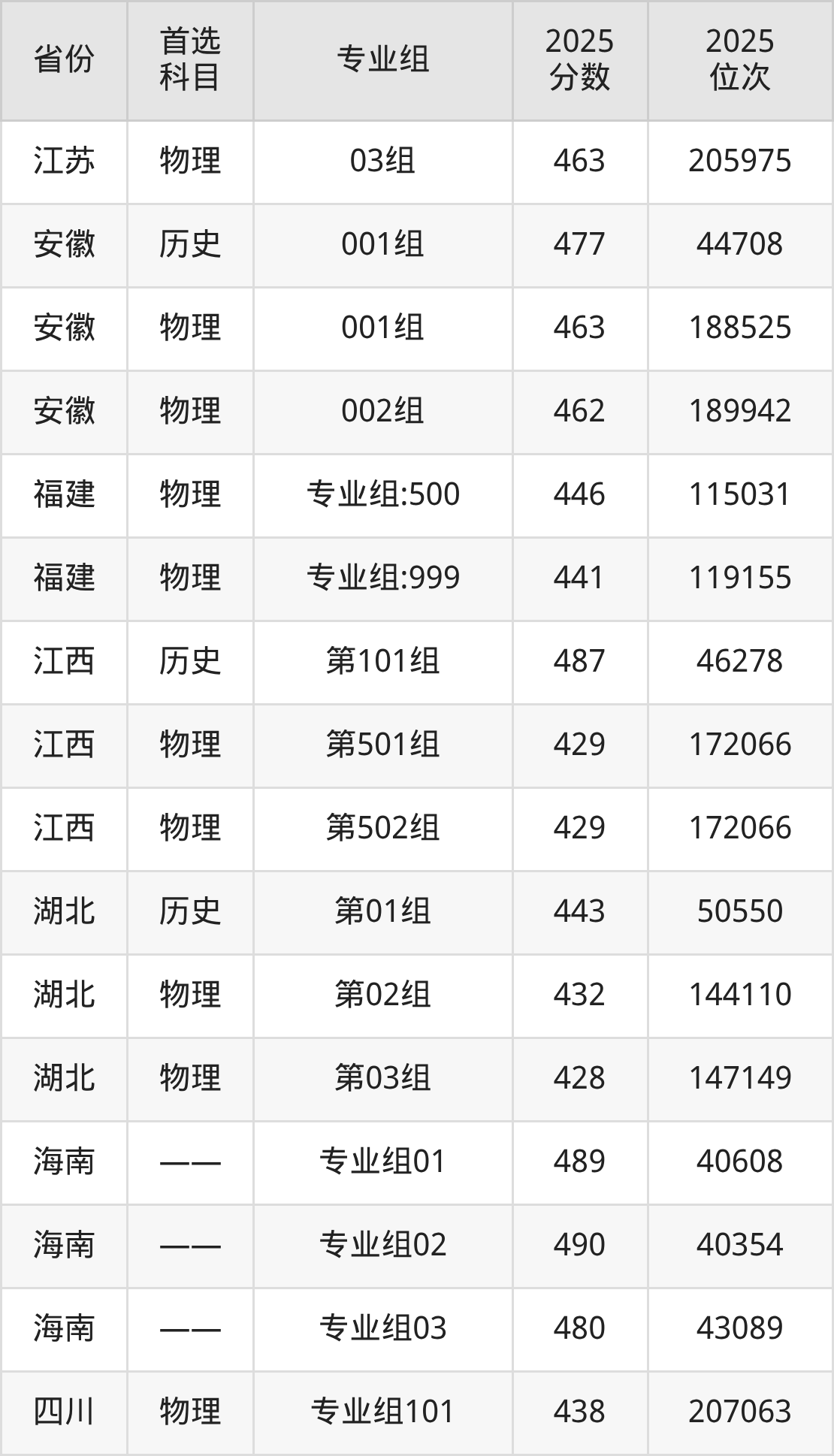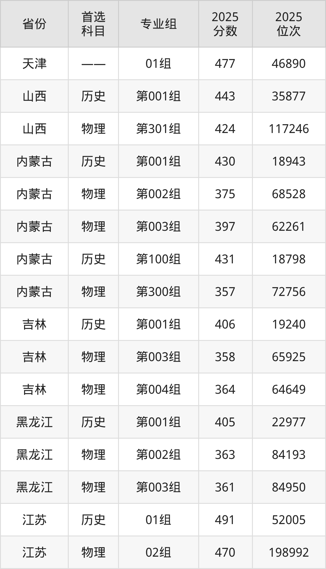 因为大部分地区目前只公布了院校(专业组)分数线,为了方便2026年考生参考,本文就整理出长春工业大学人文信息学院在全国各省不同科类的最低分: