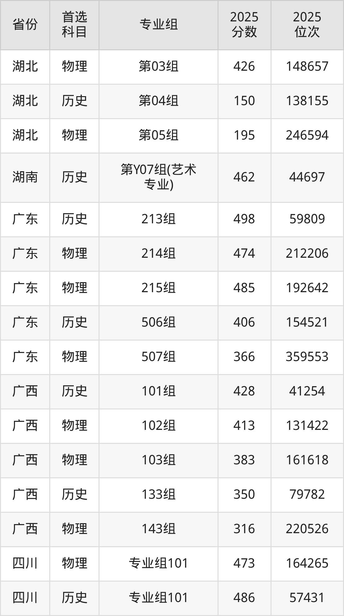 因为大部分地区目前只公布了院校(专业组)分数线,为了方便2026年考生参考,本文就整理出武汉传媒学院在全国各省不同科类的最低分: