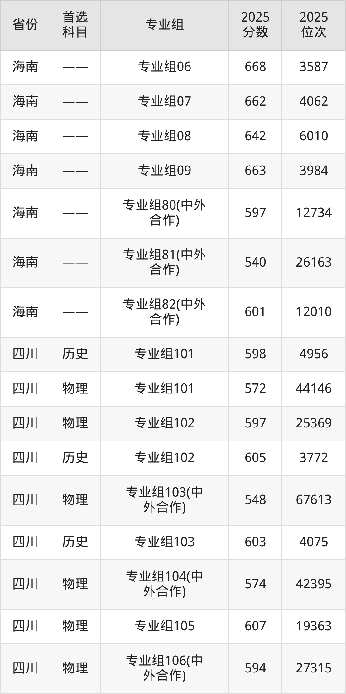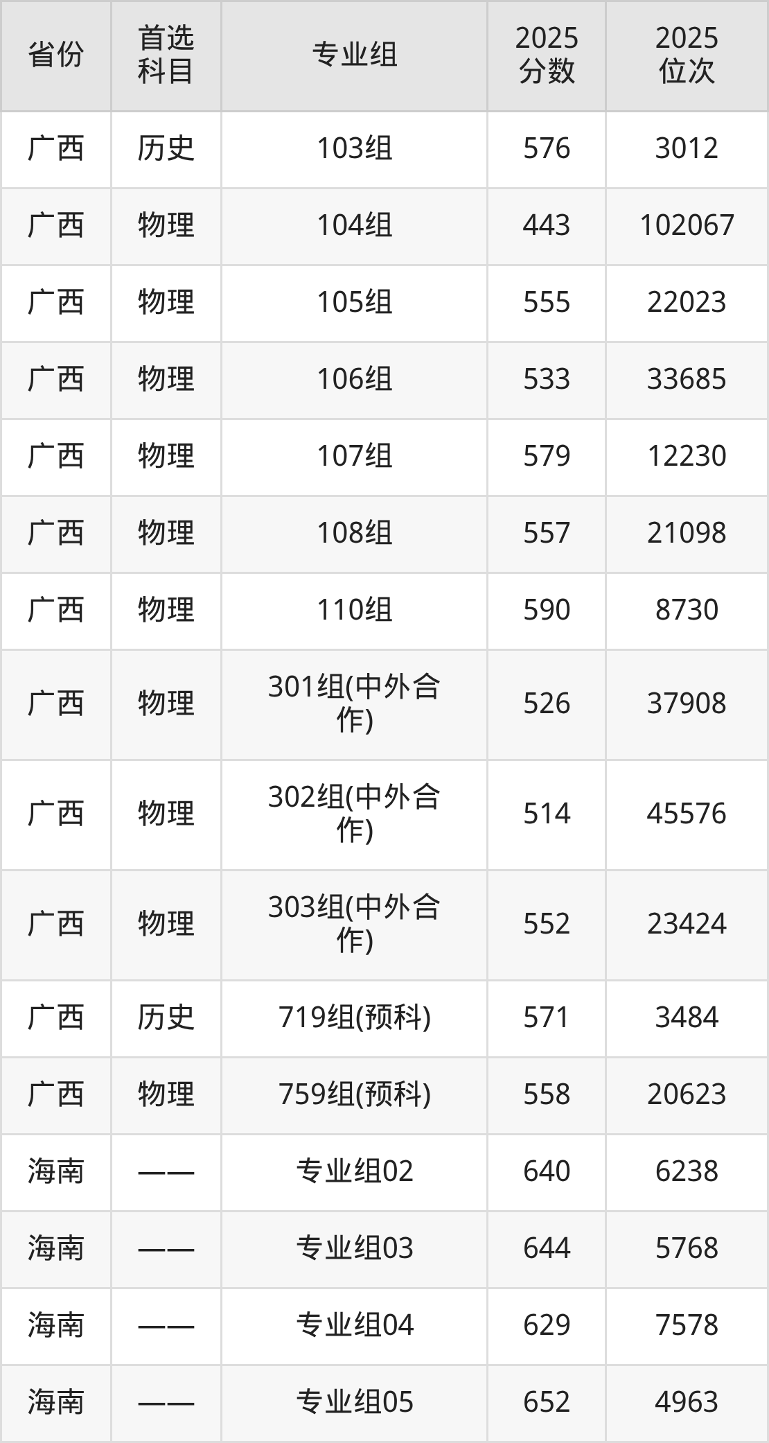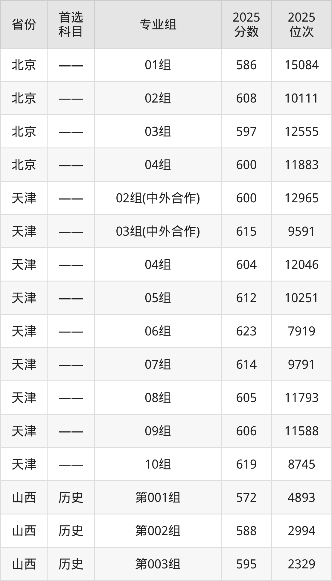 因为大部分地区目前只公布了院校(专业组)分数线,为了方便2026年考生参考,本文就整理出云南大学在全国各省不同科类的最低分: