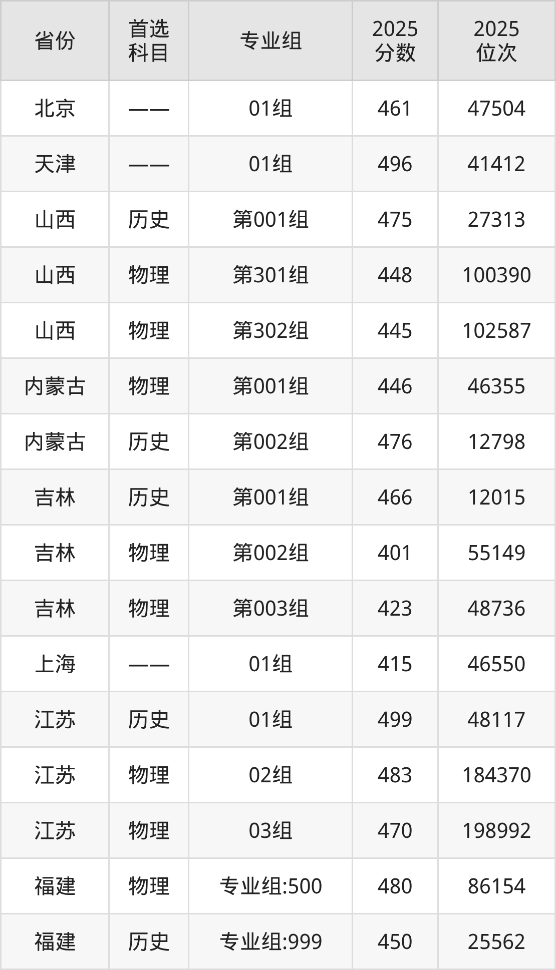 因为大部分地区目前只公布了院校(专业组)分数线,为了方便2026年考生参考,本文就整理出西安交通大学城市学院在全国各省不同科类的最低分: