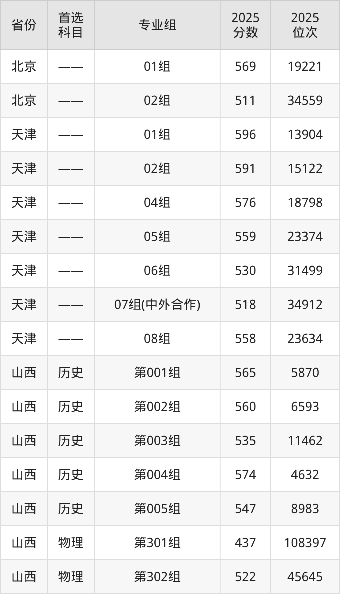 河北师范大学在全国各省分专业组录取分数线: