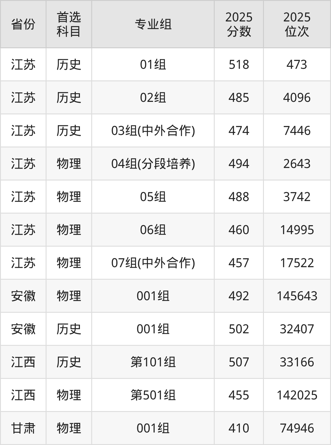 因为大部分地区目前只公布了院校(专业组)分数线,为了方便2026年考生参考,本文就整理出南京铁道职业技术学院在全国各省不同科类的最低分:
