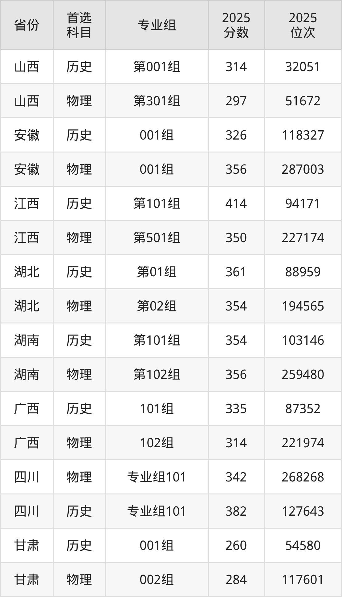 因为大部分地区目前只公布了院校(专业组)分数线,为了方便2026年考生参考,本文就整理出三峡旅游职业技术学院在全国各省不同科类的最低分: