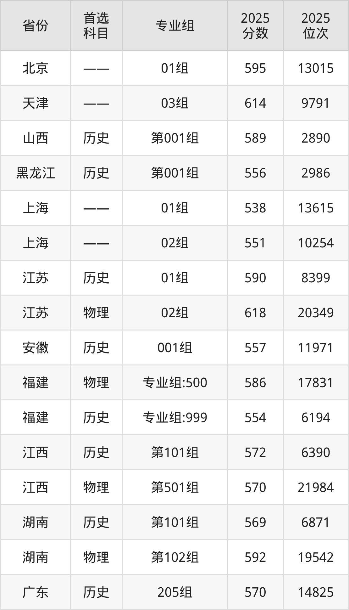 因为大部分地区目前只公布了院校(专业组)分数线,为了方便2026年考生参考,本文就整理出中国美术学院在全国各省不同科类的最低分: