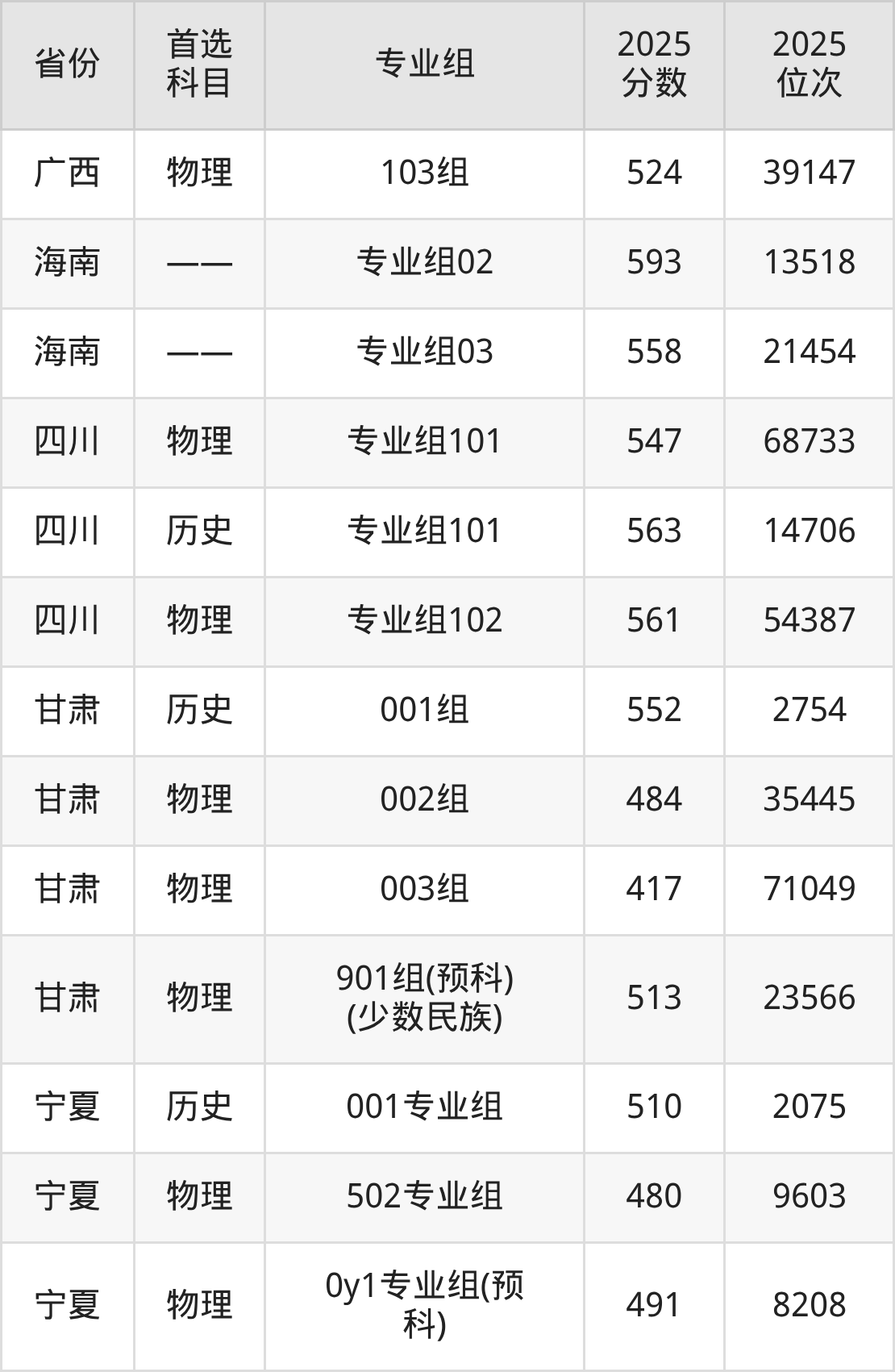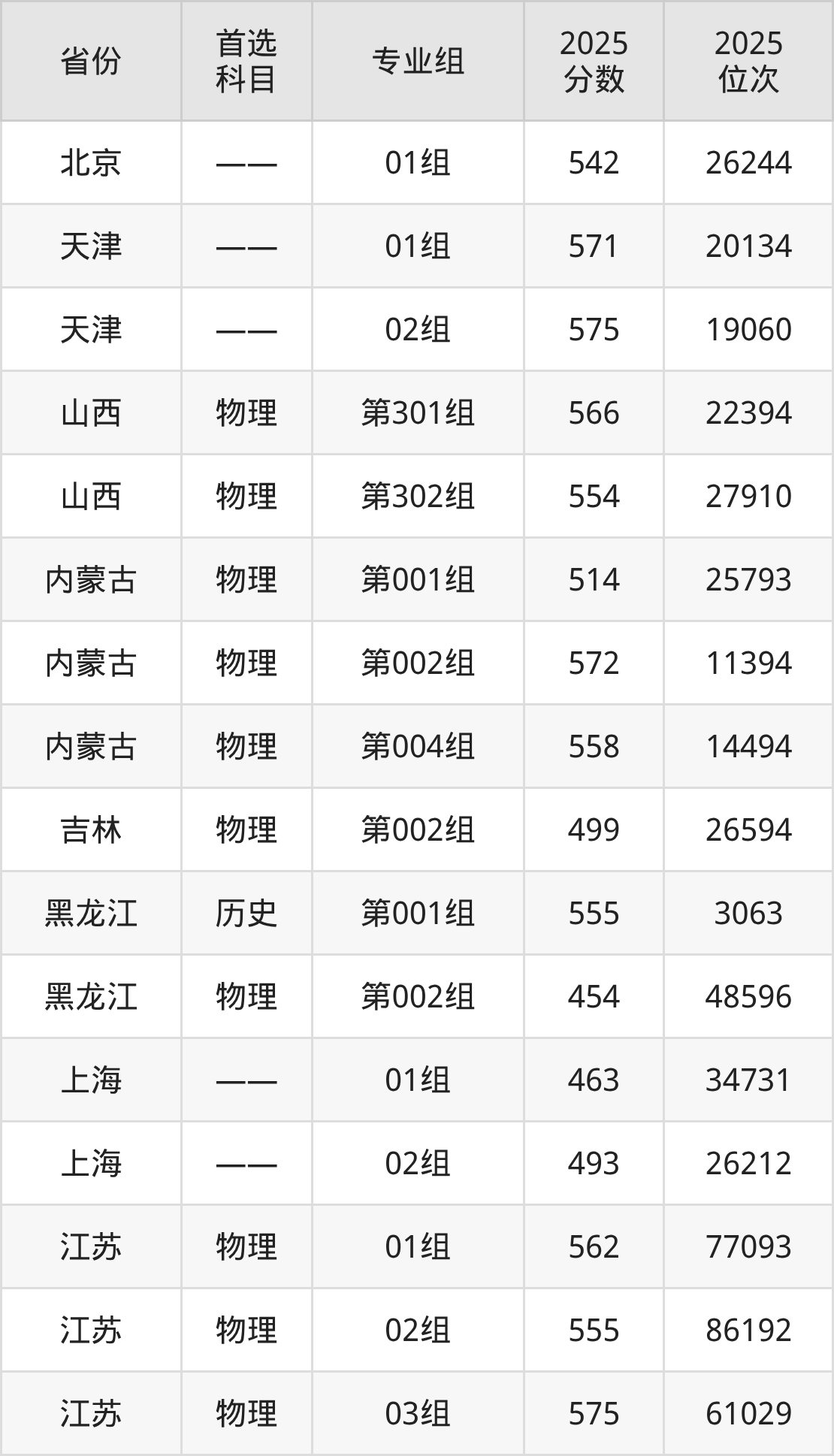 因为大部分地区目前只公布了院校(专业组)分数线,为了方便2026年考生参考,本文就整理出西安科技大学在全国各省不同科类的最低分: