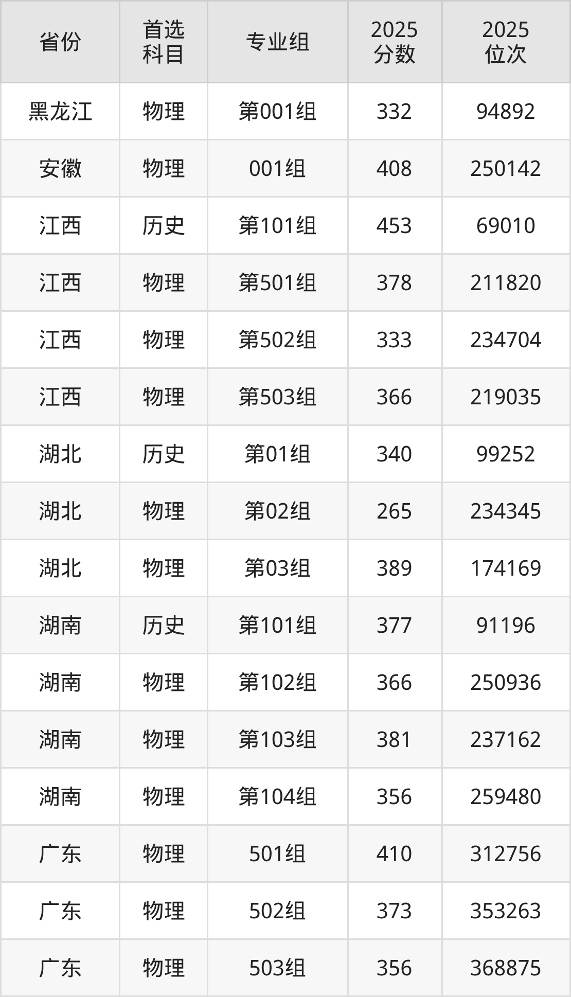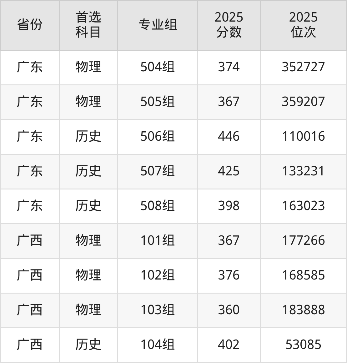 因为大部分地区目前只公布了院校(专业组)分数线,为了方便2026年考生参考,本文就整理出广东茂名健康职业学院在全国各省不同科类的最低分: