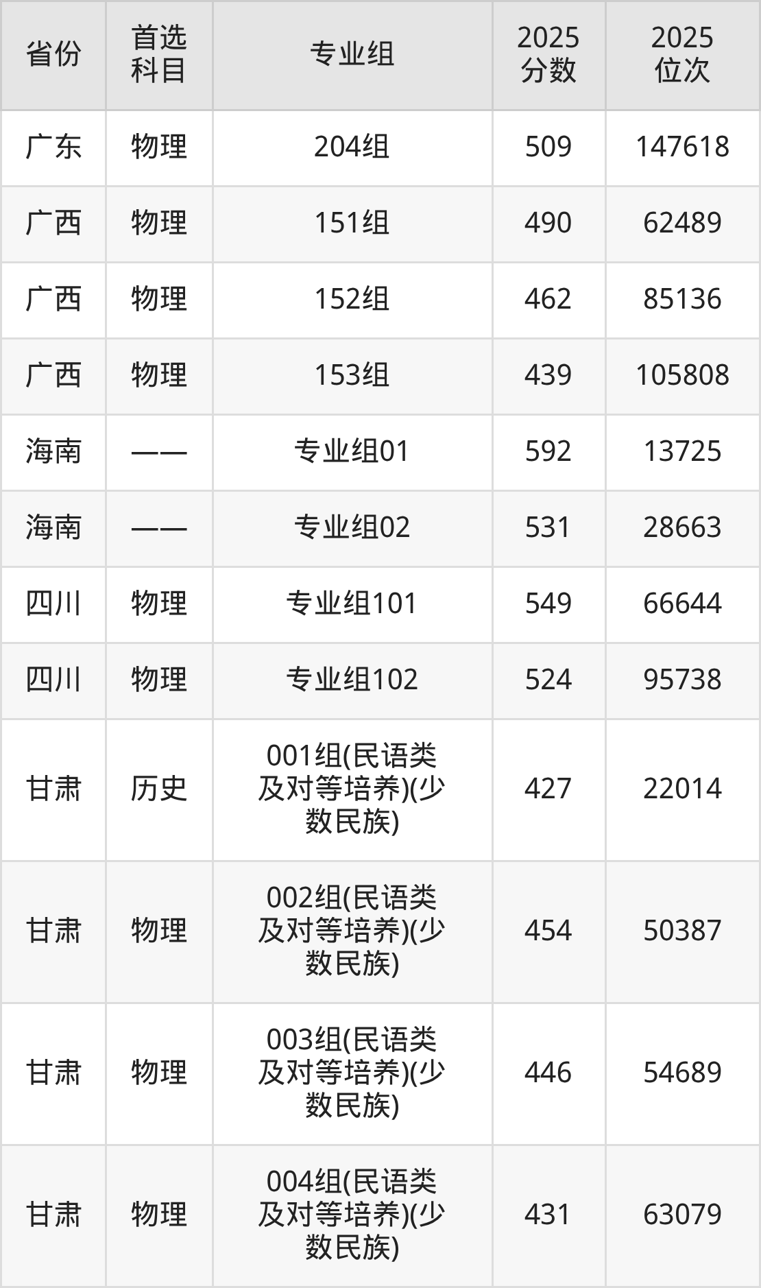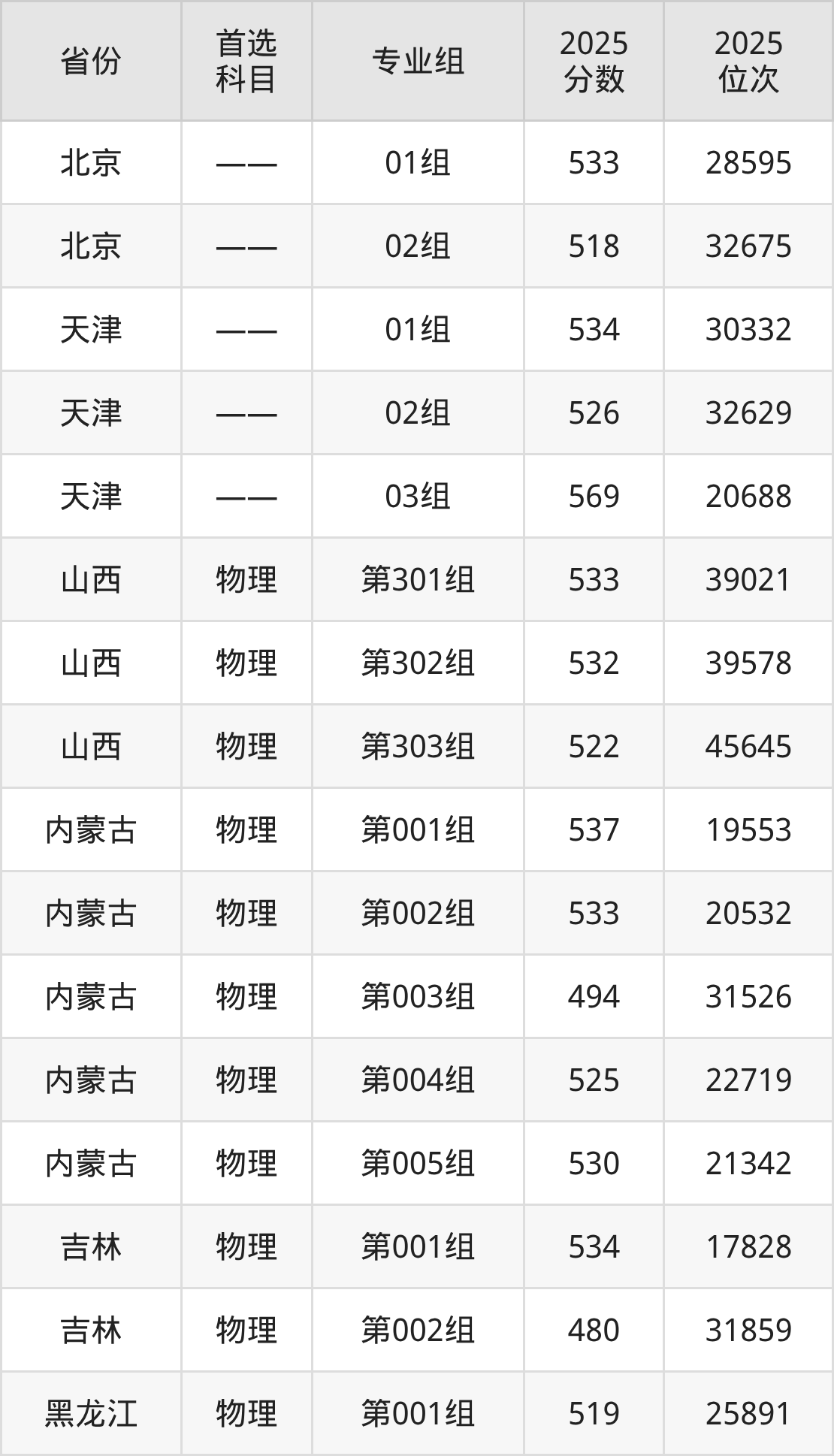 因为大部分地区目前只公布了院校(专业组)分数线,为了方便2026年考生参考,本文就整理出河北北方学院在全国各省不同科类的最低分: