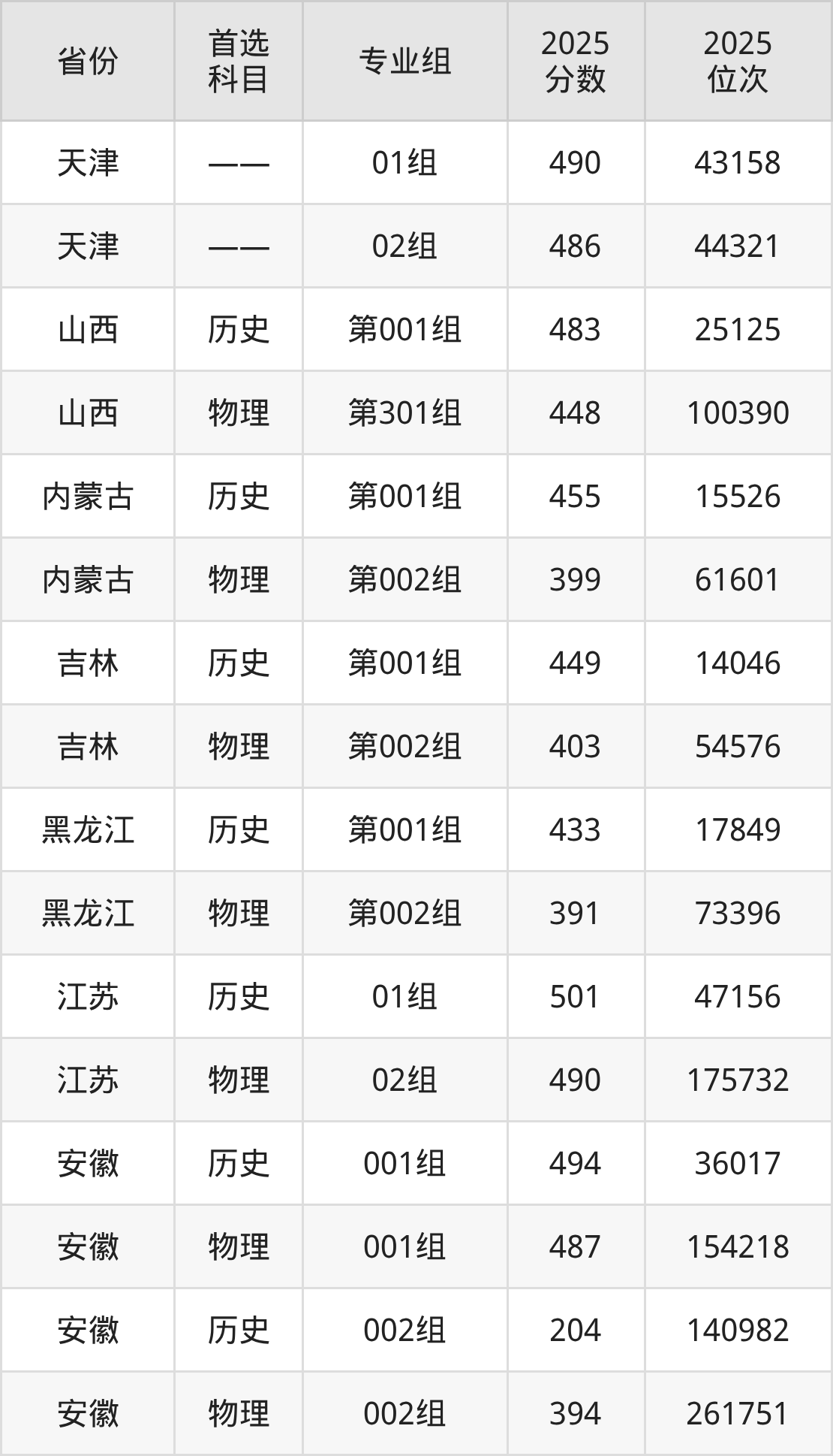 9.安徽:历史类204分、140982位,物理类394分、261751位
